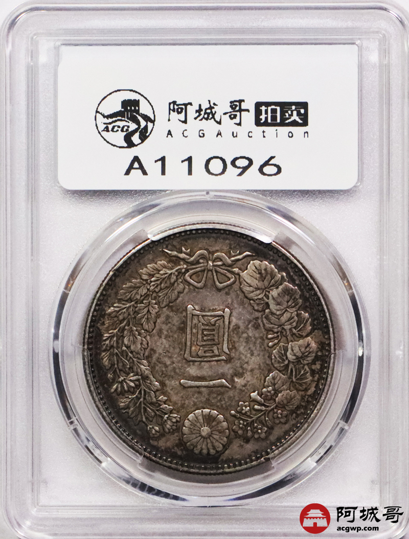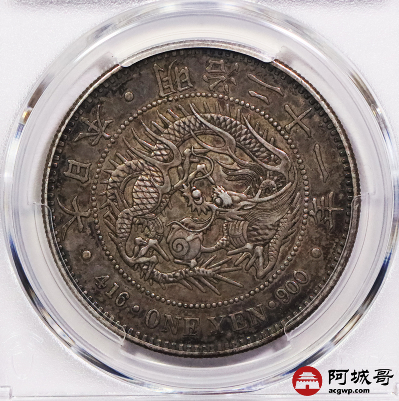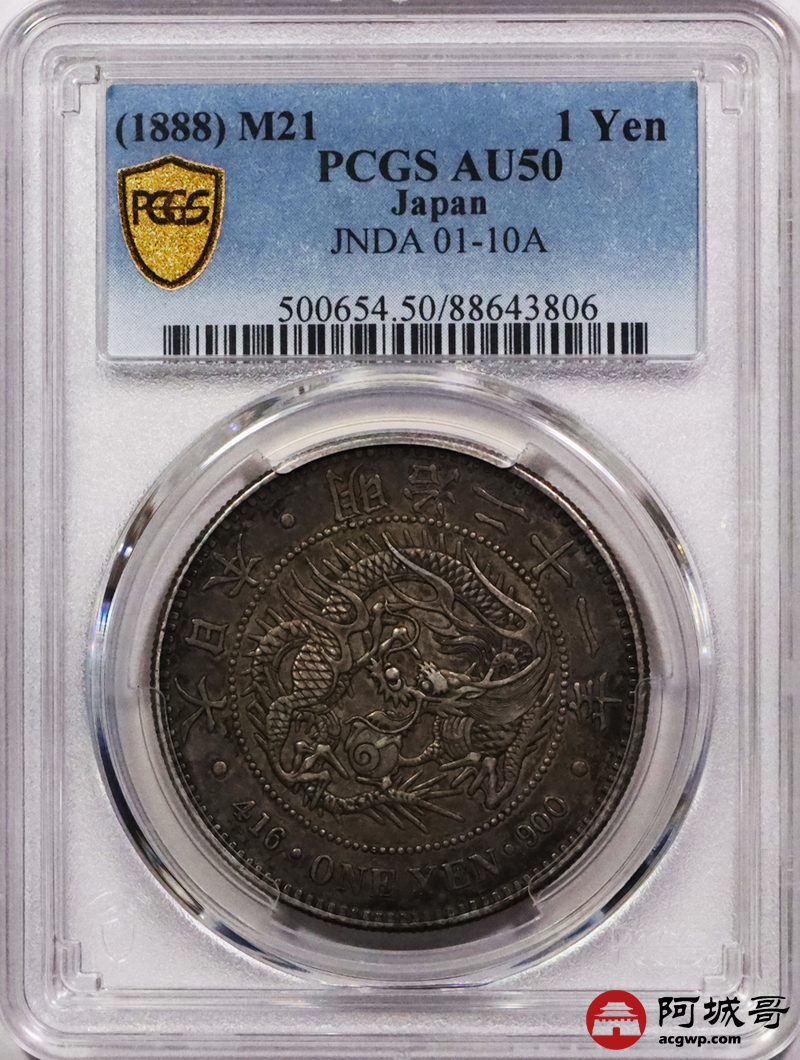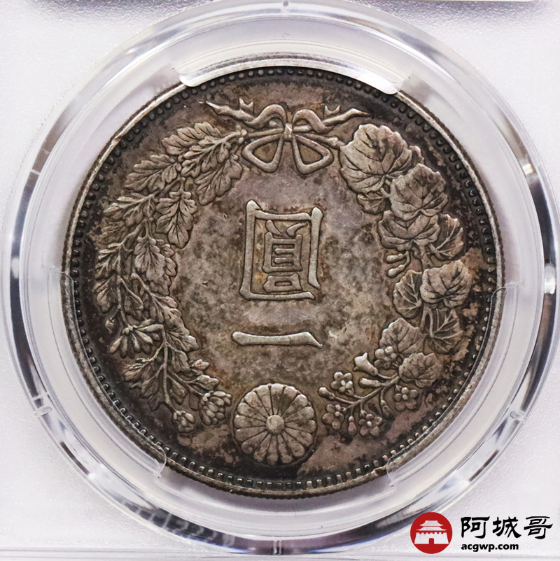 Lot:3744 1888明治二十一年日本一圆银币一枚,酱彩老包浆,PCGS AU50评级编号:88643806