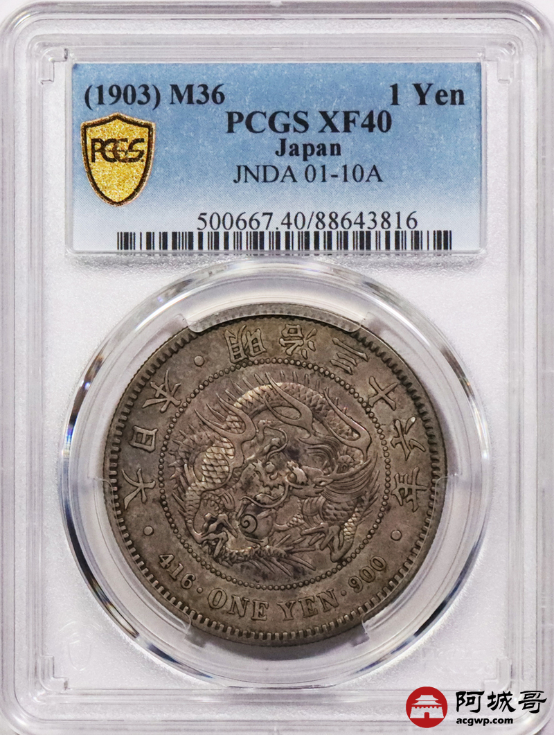 Lot:3741 1903明治三十六年日本一圆银币一枚,原汁原味,PCGS XF40评级编号:88643816