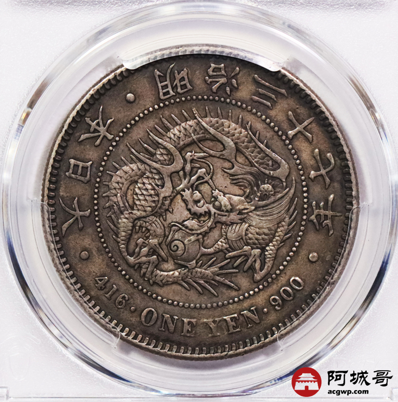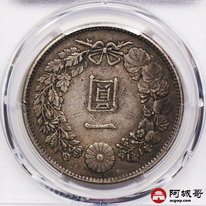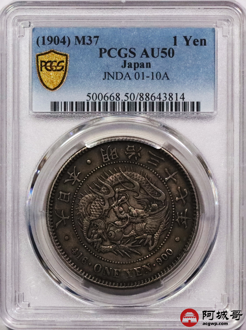 Lot:3743 1904明治三十七年日本一圆银币一枚,老包浆深打,PCGS AU50评级编号:88643814