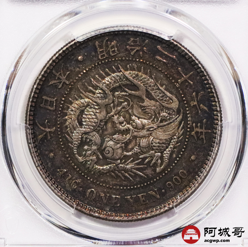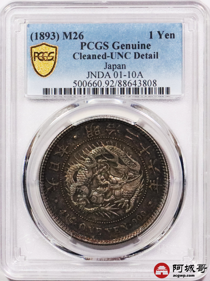 Lot:3740 1893明治二十六年日本一圆银币一枚,酱彩老包浆,PCGS UNC评级编号:88643808