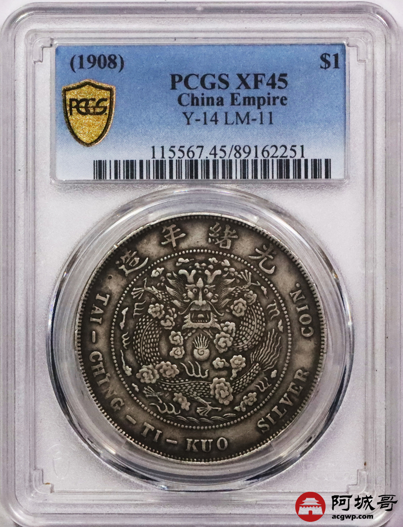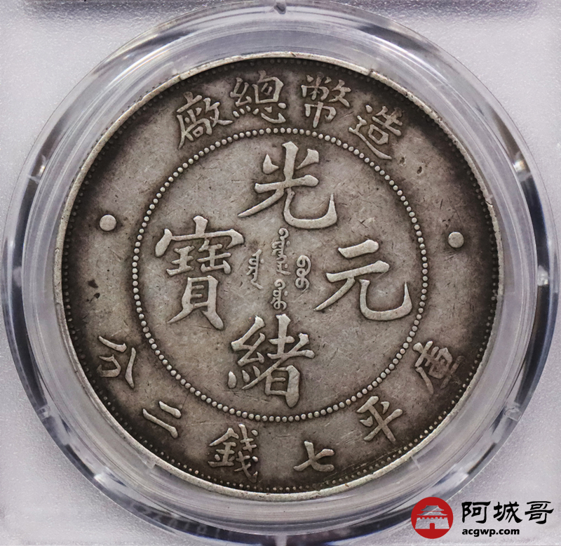 Lot:3006 1908光绪年造造币总厂光绪元宝库平七钱二分银币一枚,原汁原味,全深打PCGS XF45评级编号:89162251
