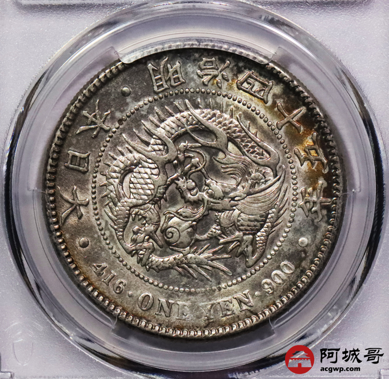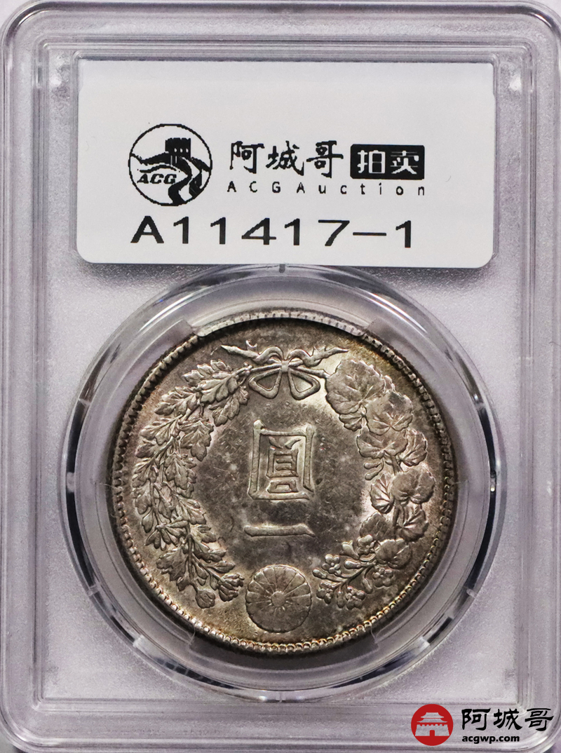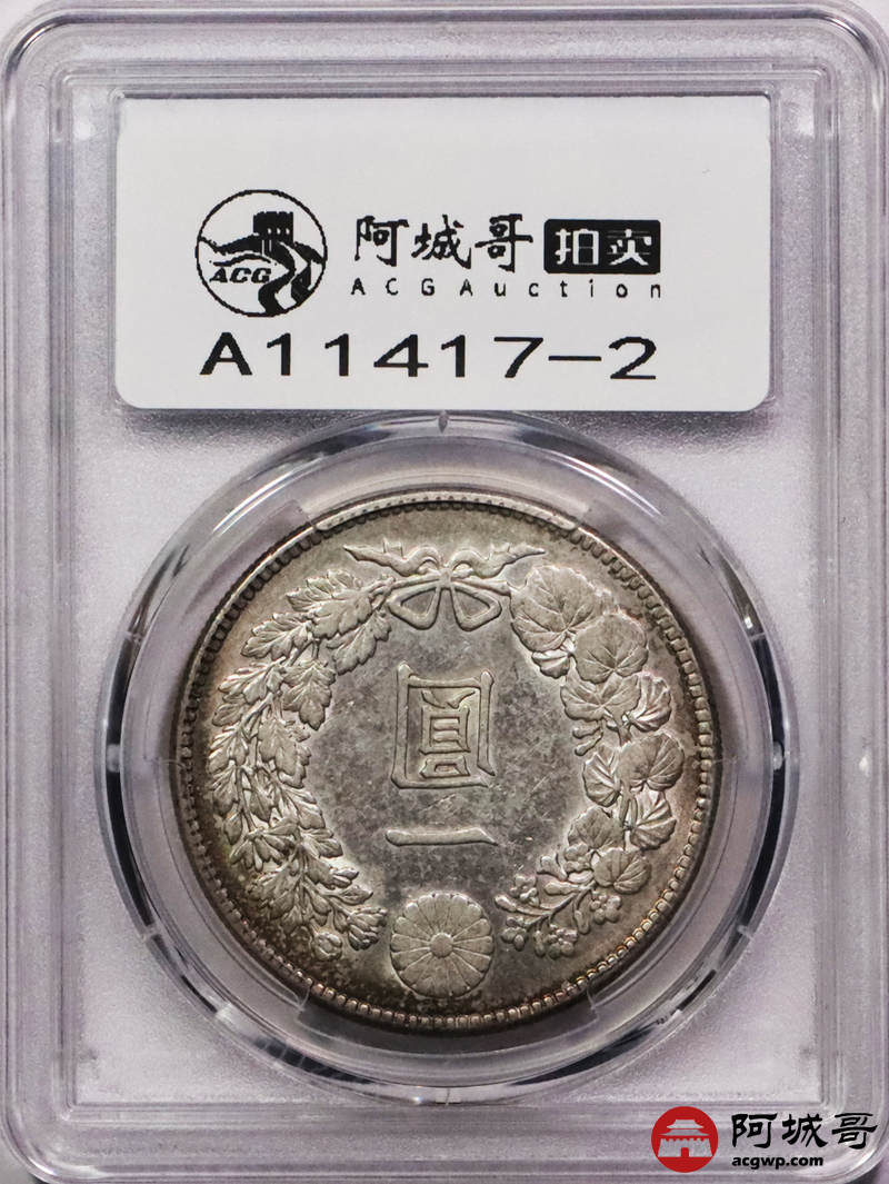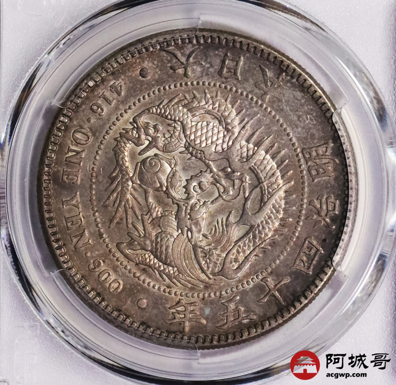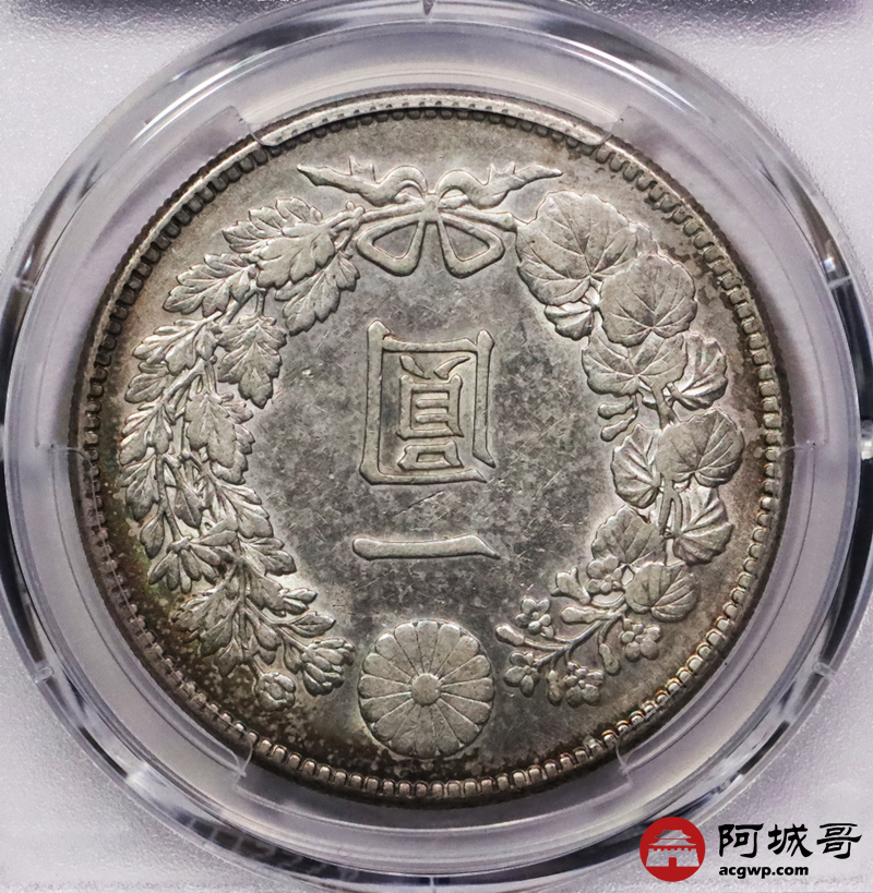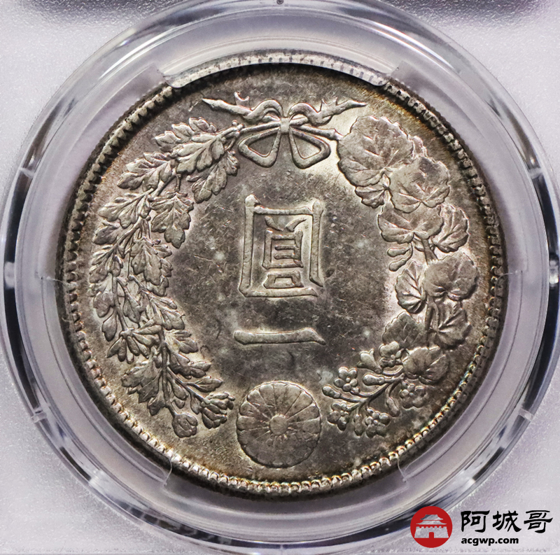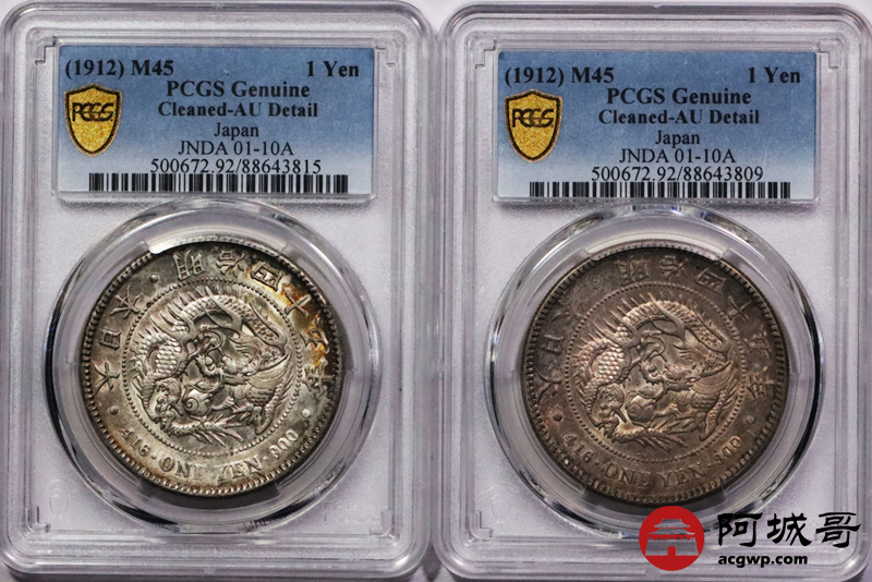 Lot:3747 1912明治四十五年日本壹圆银币2枚一组,五彩包浆深打PCGS AU评级编号:88643815-88643809