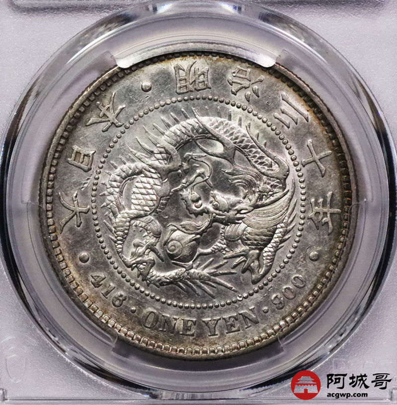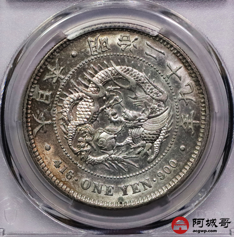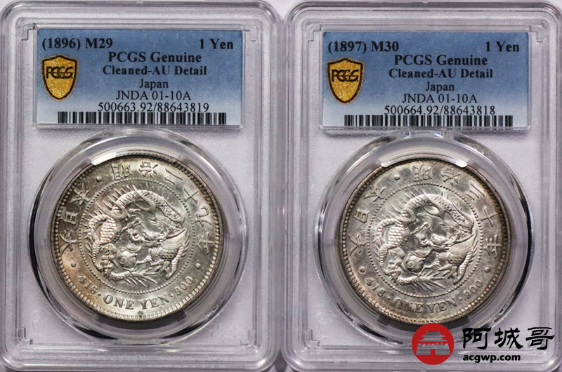 Lot:3748 1897明治三十年日本壹元银币/1896明治二十九年日本壹元银币2枚一组,黄油转光PCGS AU评级编号:88643818/88643819