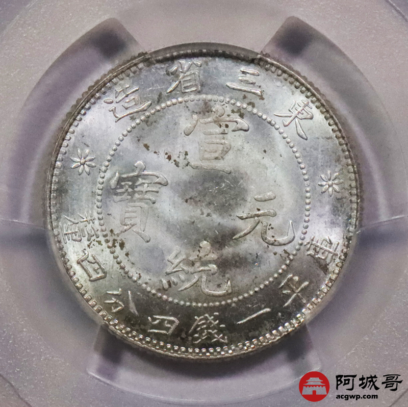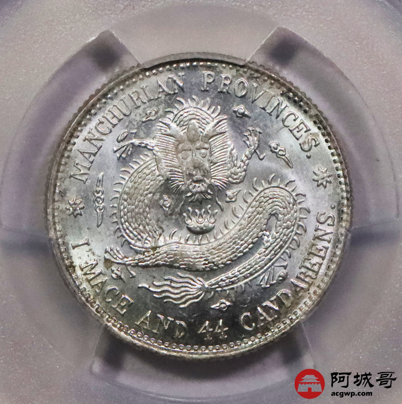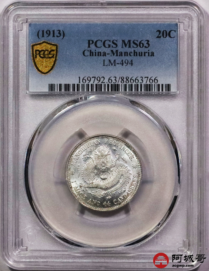 Lot:3613 1913东三省造宣统元宝库平一钱四分四厘银币一枚,原光深打满龙鳞PCGS MS63评级编号:88663766