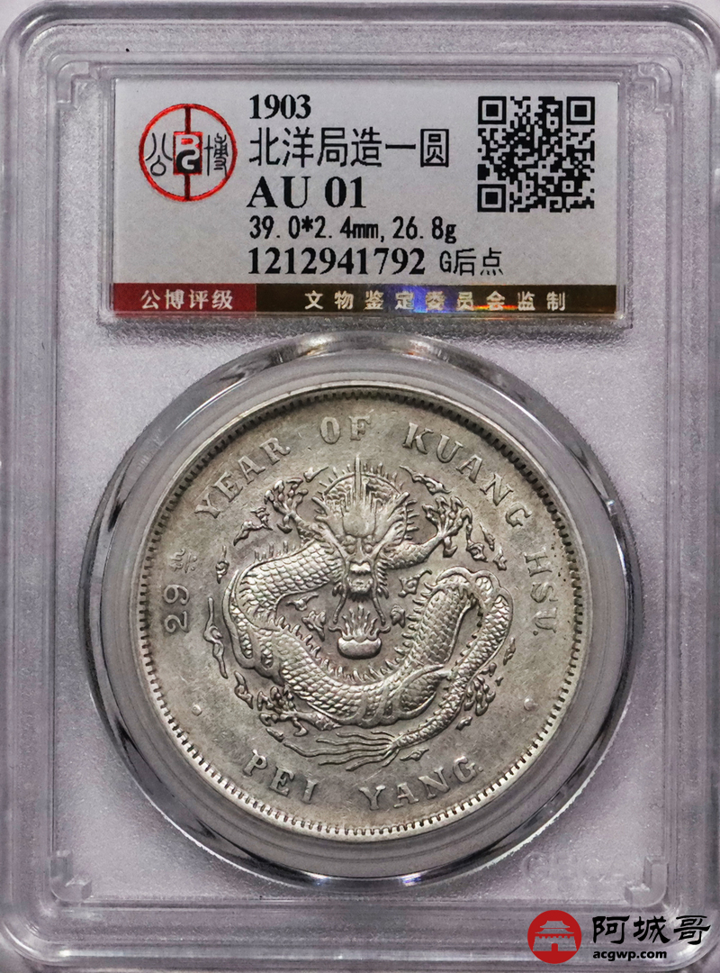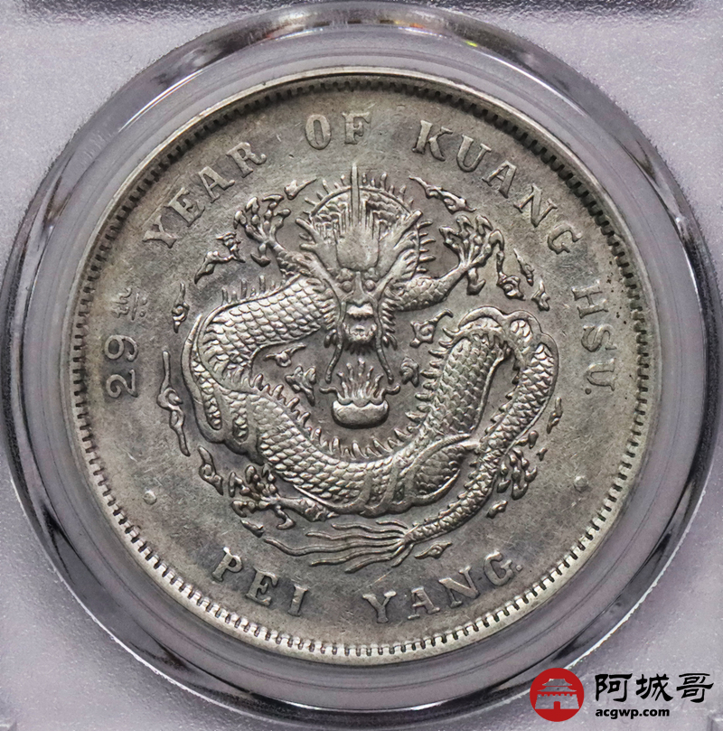 Lot:3354 1903光绪二十九年北洋造光绪元宝库平七钱二分银币一枚,龙鳞锐利 字口深打 GBCA AU01 评级编号: 1212941792