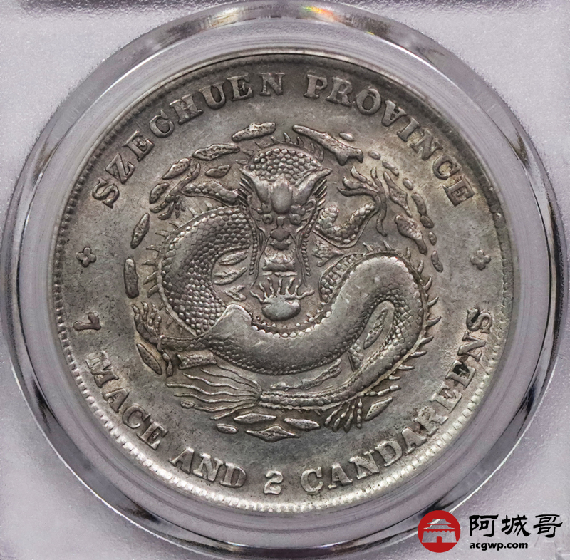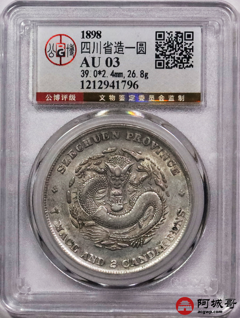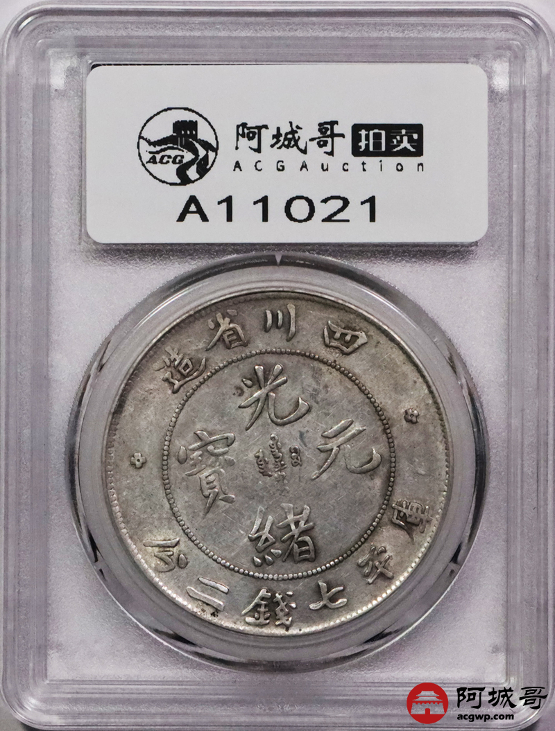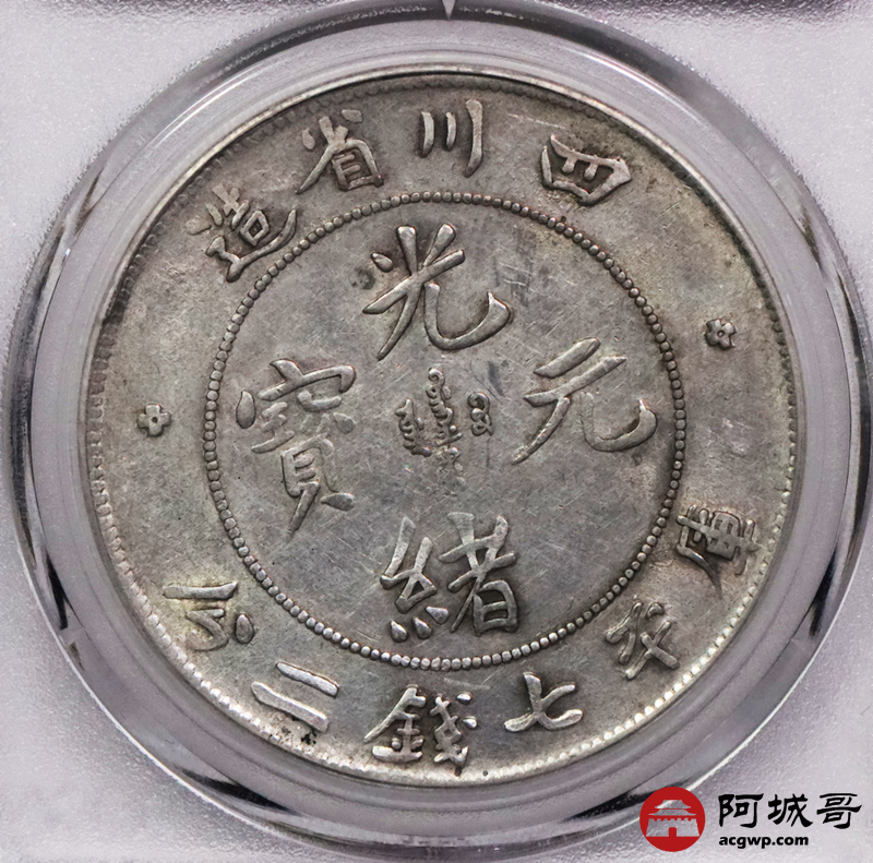 Lot:3406 1898四川省造光绪元宝库平七钱二分银币一枚,字口深打,底板带光 GBCA AU03 评级编号:1212941796