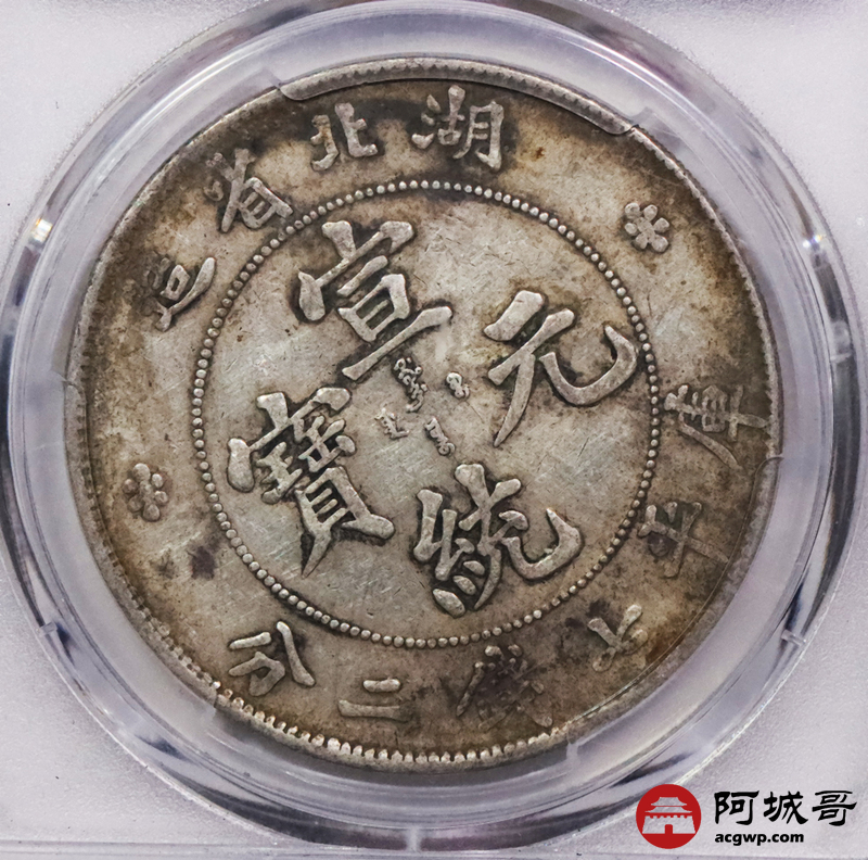 Lot:3078 1909-11湖北省造宣统元宝库平七钱二分银币一枚,原味老包浆 PCGS XF