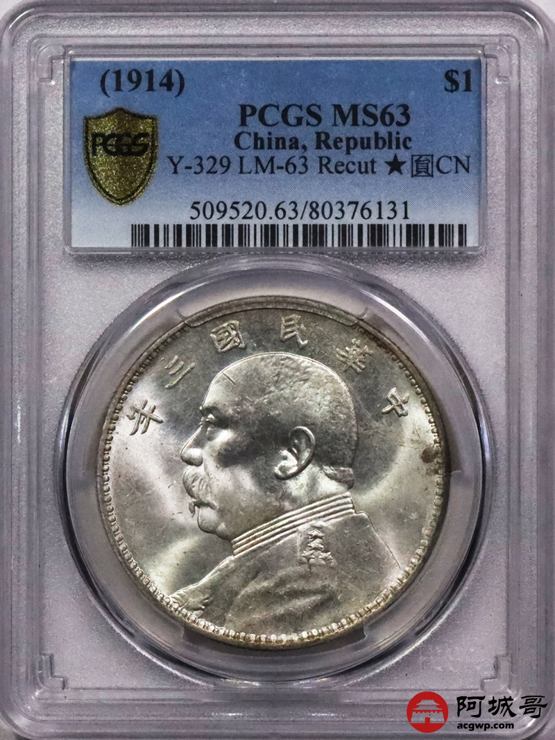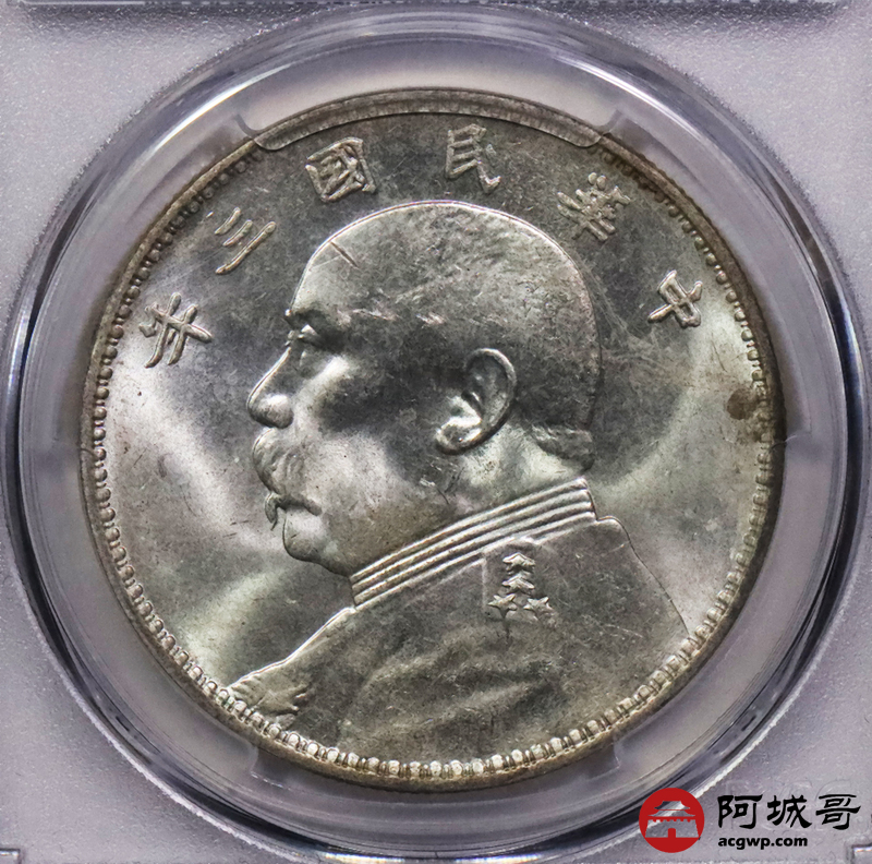 Lot:3487 1914民国三年袁世凯像壹圆银币一枚,拆卷曝光 PCGS MS63