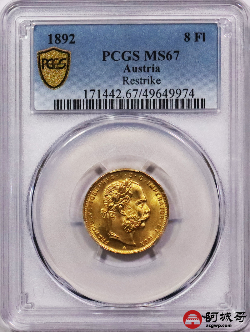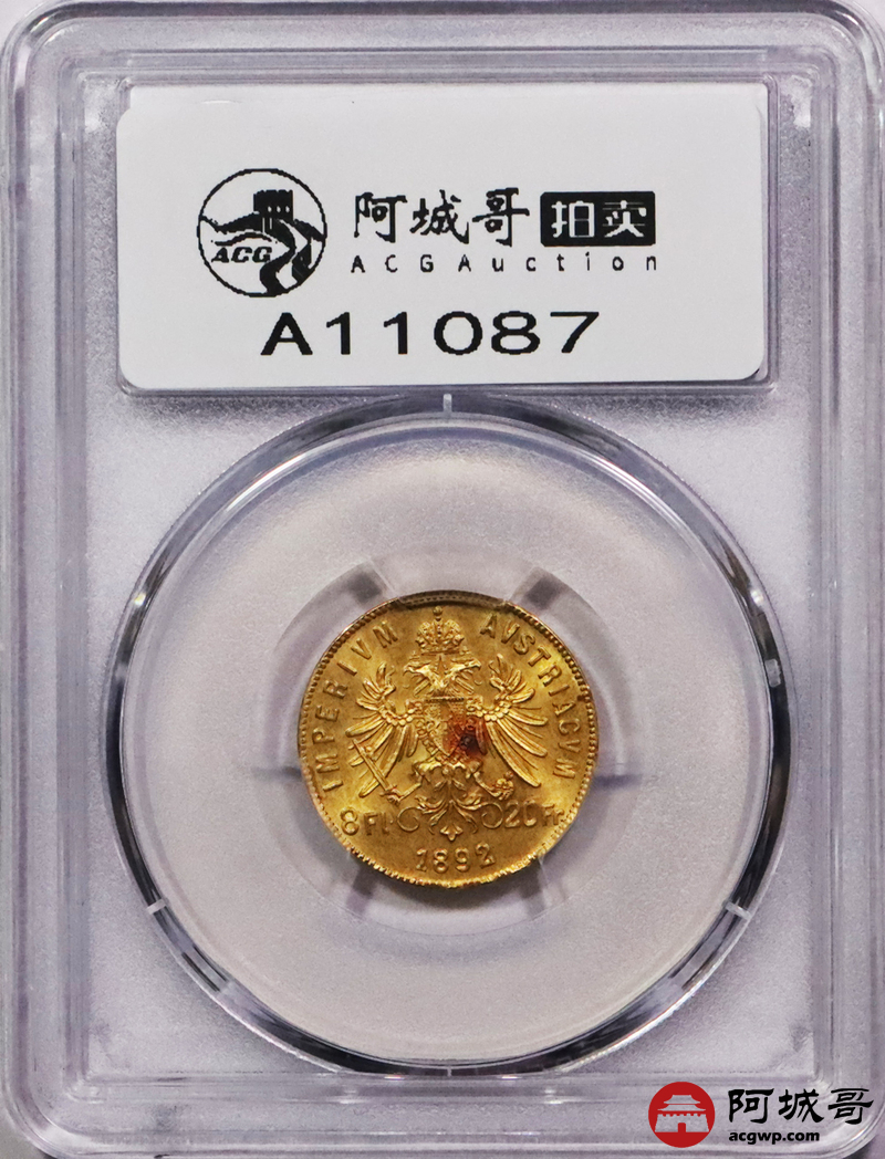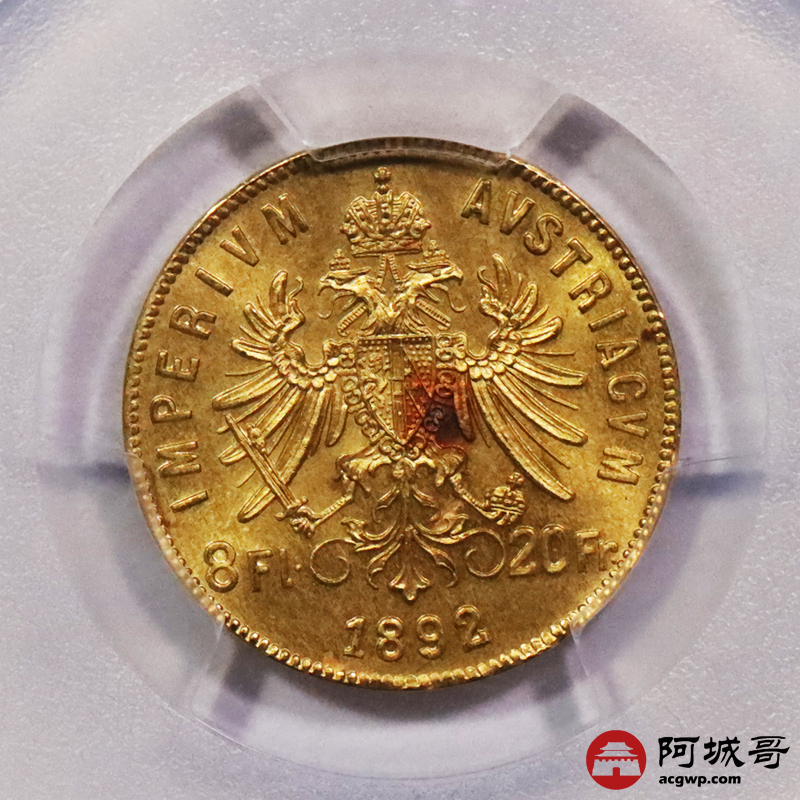 Lot:3668 1892奥匈帝国8佛罗林20法郎金币一枚,PCGS MS67评级编号:49649974
