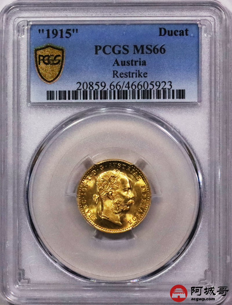 Lot:3697 1915奥匈帝国杜卡特金币一枚,PCGS MS66评级编号:46605923