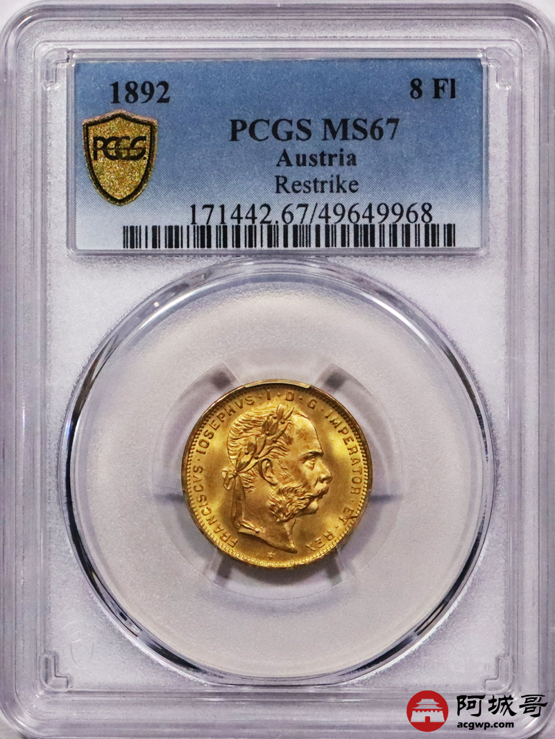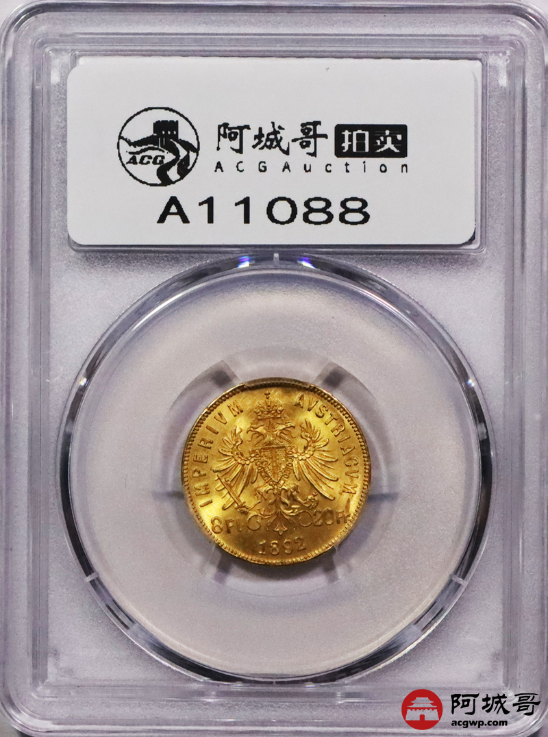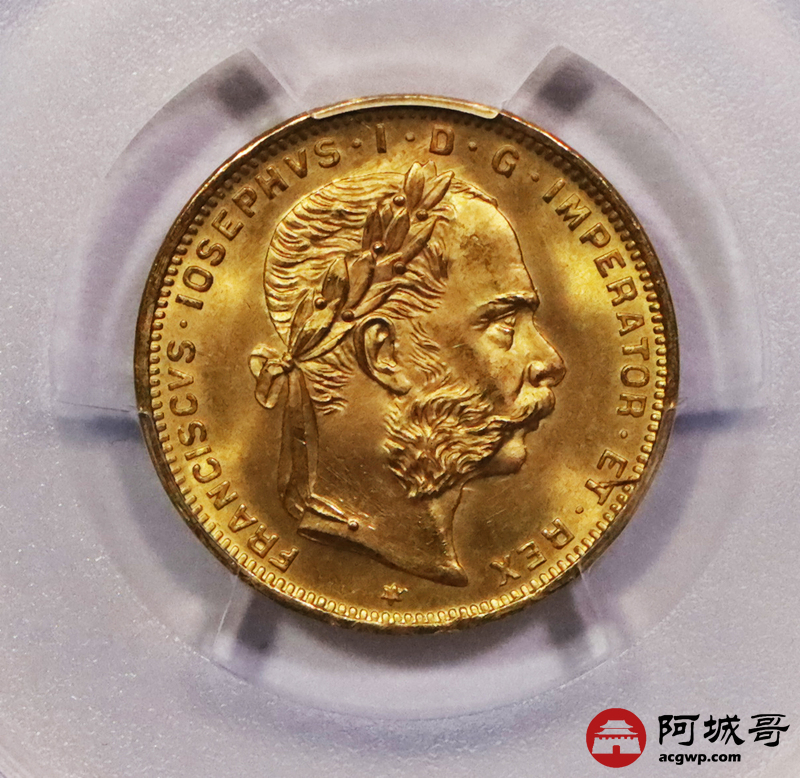 Lot:3670 1892奥匈帝国8佛罗林20法郎金币一枚,PCGS MS67评级编号:49649968