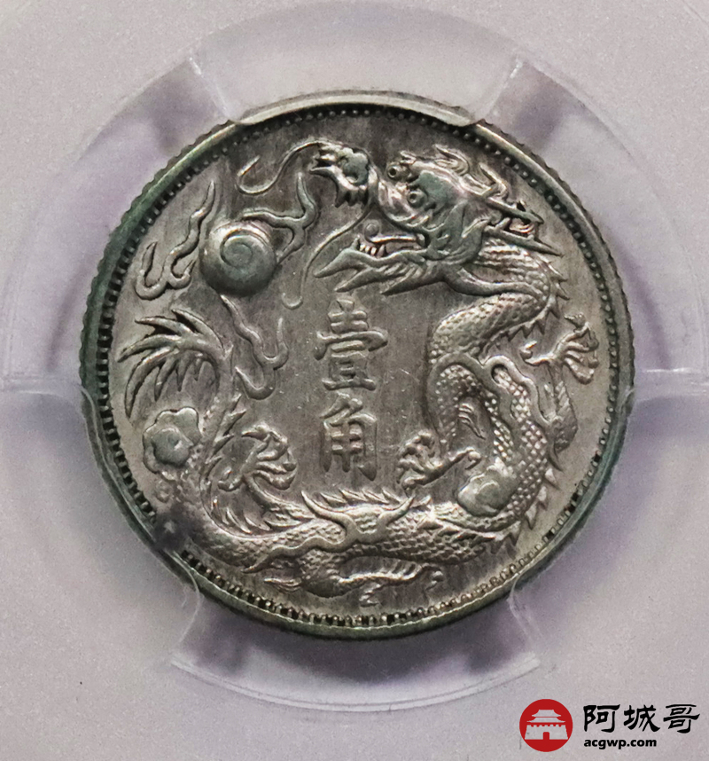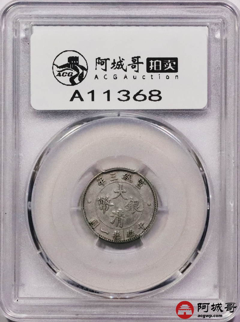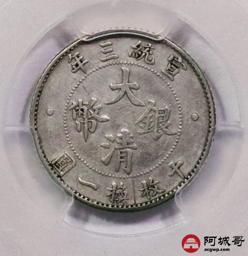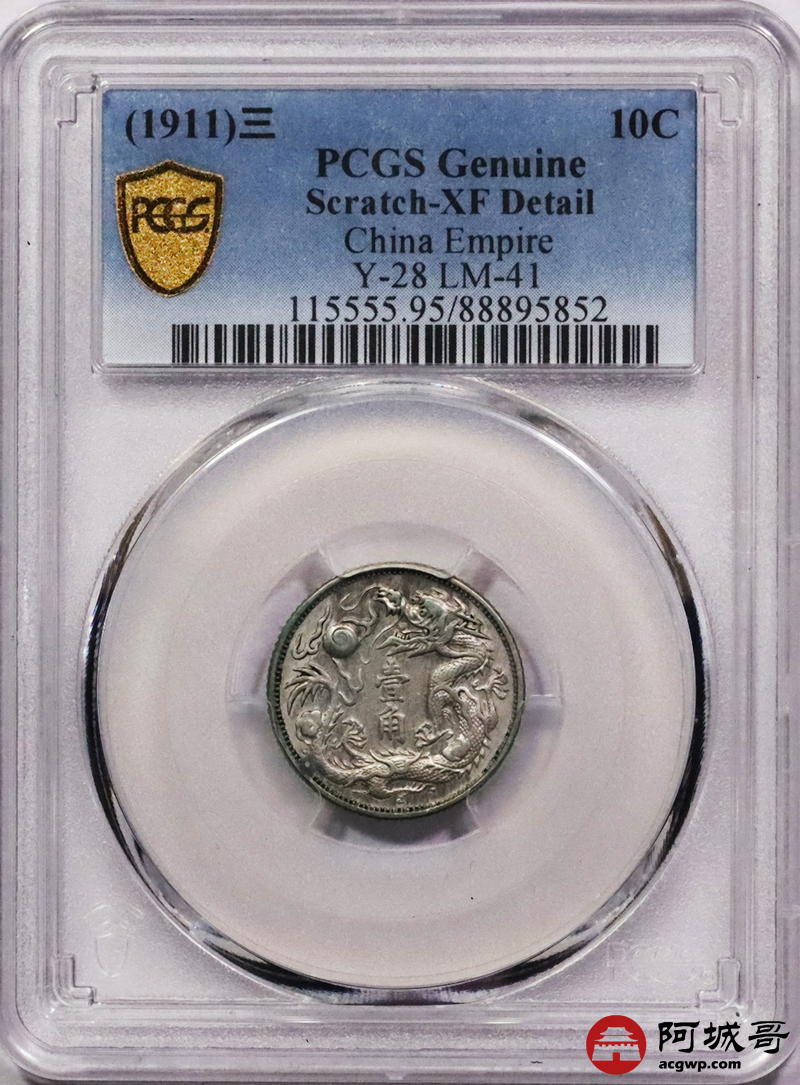 Lot:3064 1911宣统三年大清壹角银币一枚,底板深打,原味状态 PCGS XF评级编号:88895852