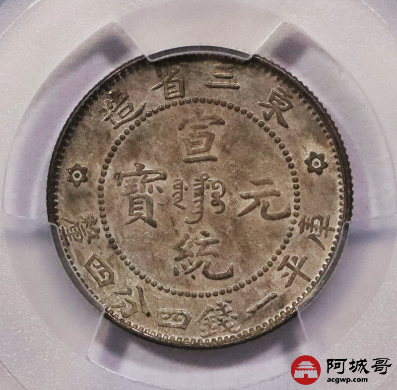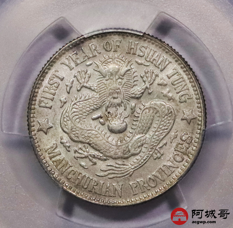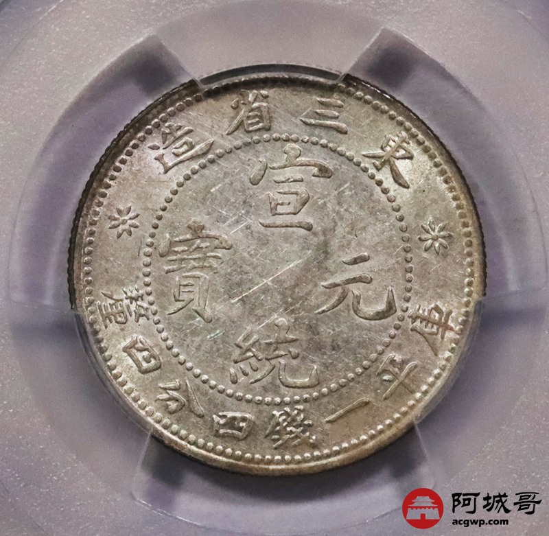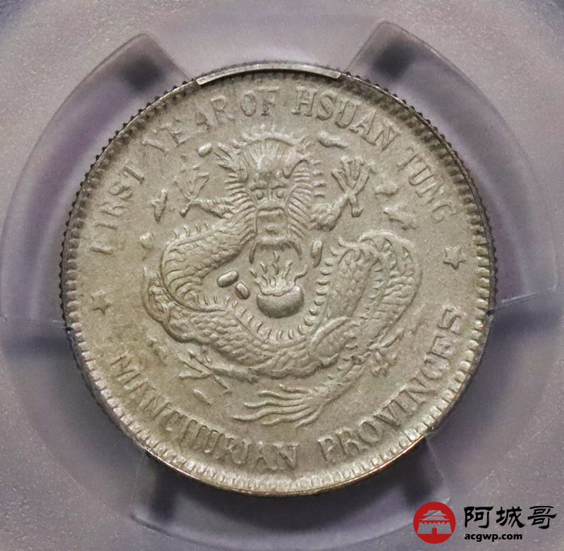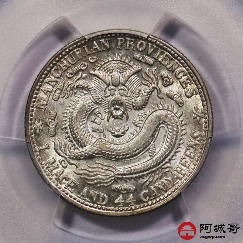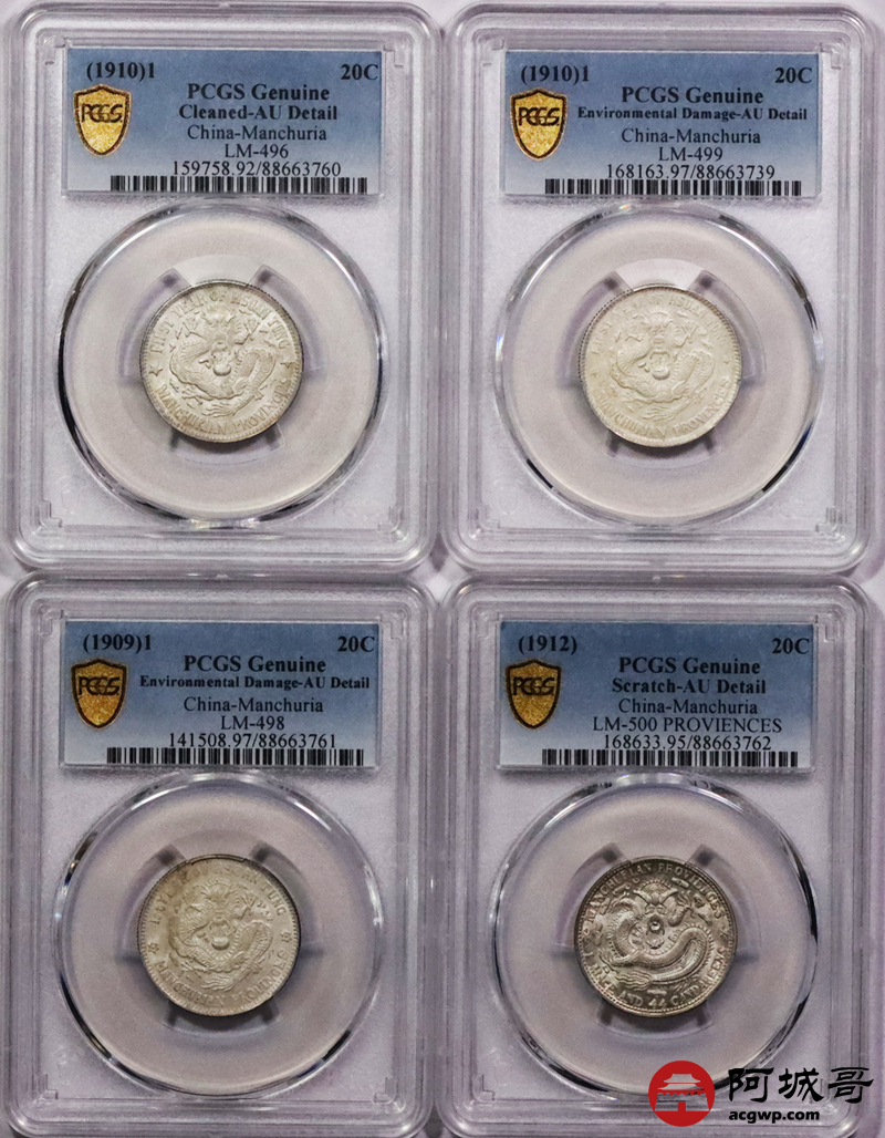 Lot:3621 1909-1910-1912东三省造光绪元宝库平一钱四分四厘银币4枚,原光满龙鳞PCGS AU评级编号:88663760-88663762-88663761-88663739