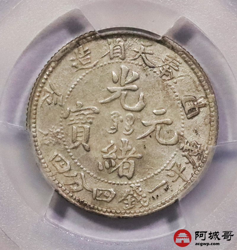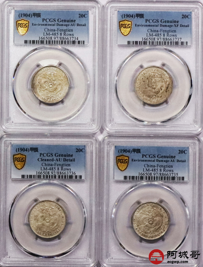 Lot:3619 1904甲辰年奉天省造光绪元宝库平一钱四分四厘银币4枚一组,原光PCGS AU评级编号:88663735-88663734-88663737-88663736