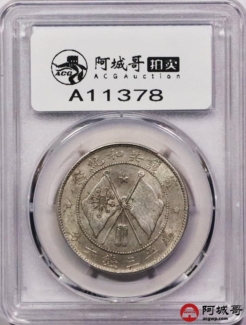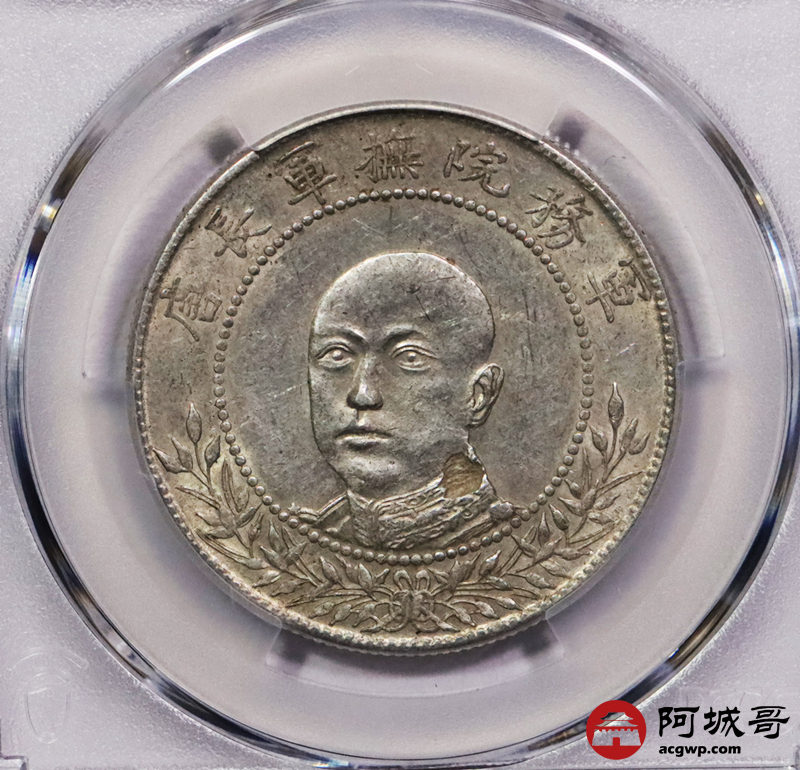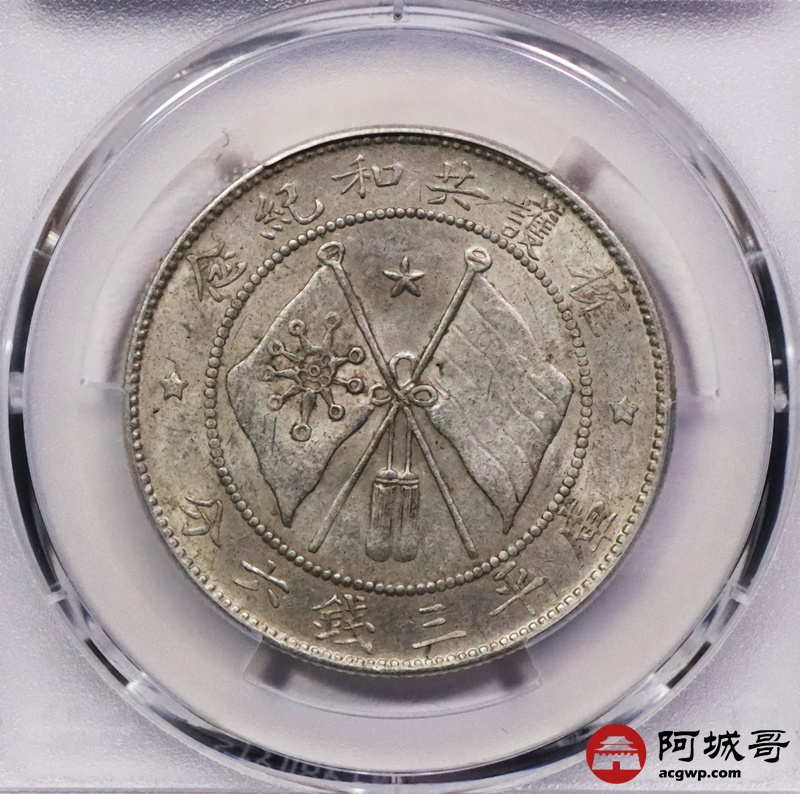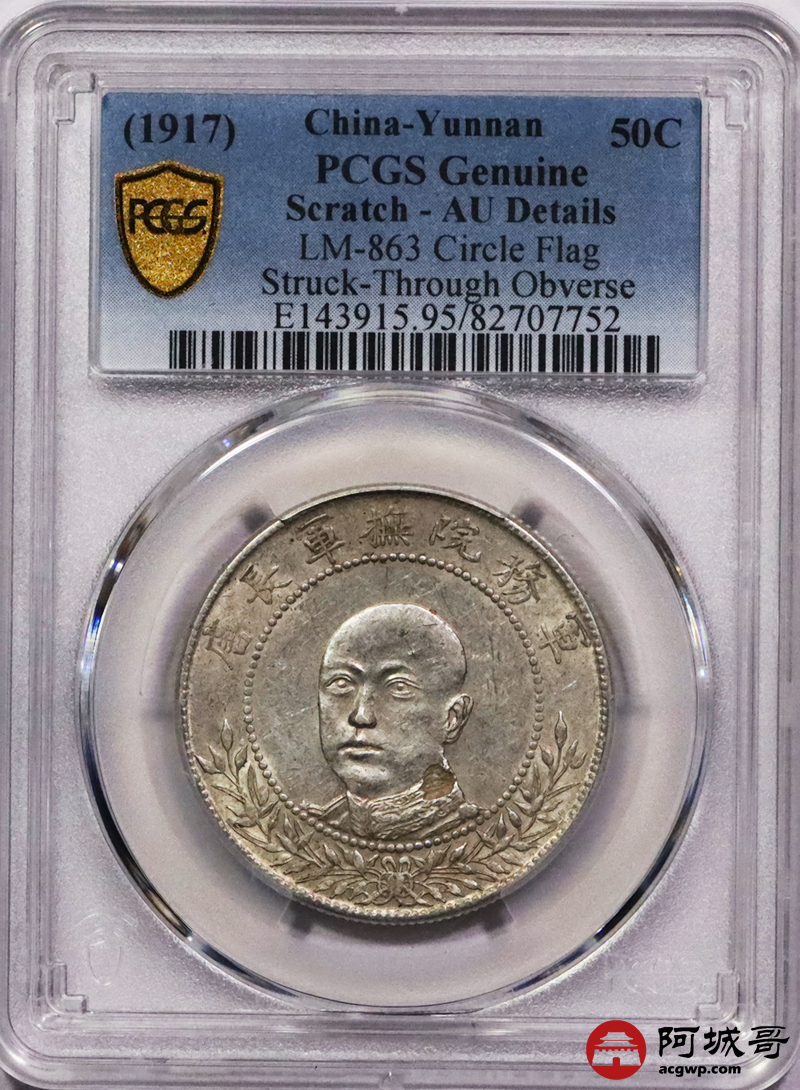 Lot:3427 1917唐继尧正面拥护共和纪念库平三钱六分银币一枚,黄油原味,底板带光 PCGS AU评级编号:82707752