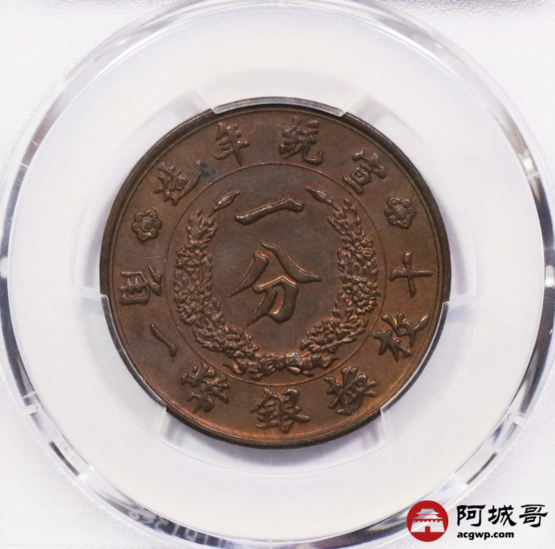 Lot:3547 1910宣统年造大清铜币一分铜币一枚,红铜质,奥地利维也纳造币厂设计制模,1910年度支部天津造币总厂铸造,属试样性质,币坯制作精良,压力十足,外缘明显异于流通币,存世数量稀少;此枚图文细节精美,细腻洁净之底版,充盈原铸红铜光泽,品相上乘,PCGS SP62BN