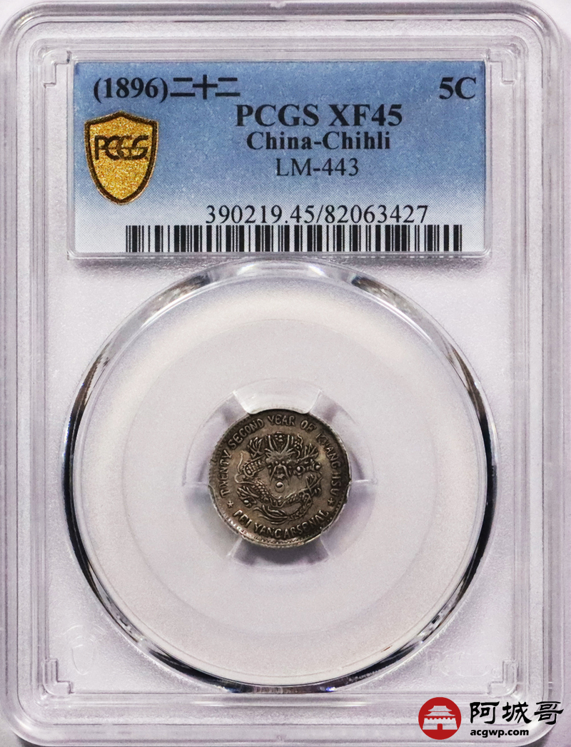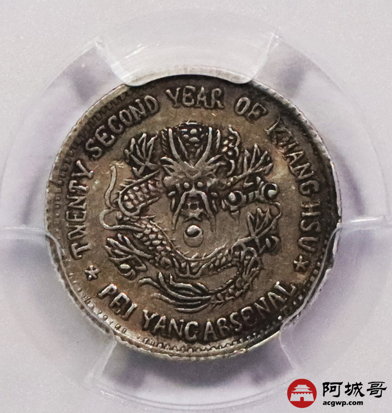 Lot:3264 1896光绪二十二年北洋造大清机器局半角银币一枚,原味五彩包浆,PCGS XF45 评级编号:82063427