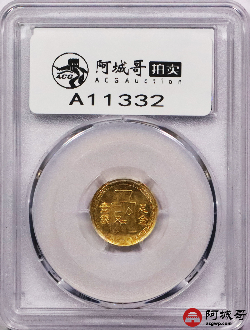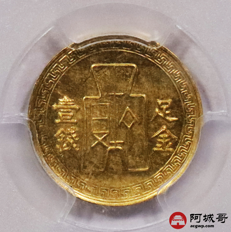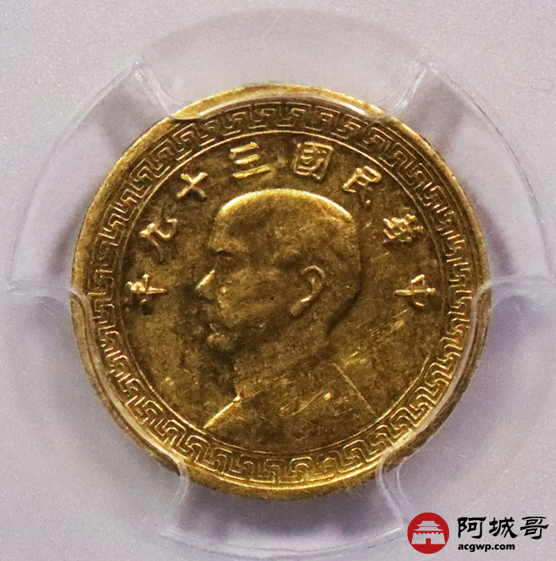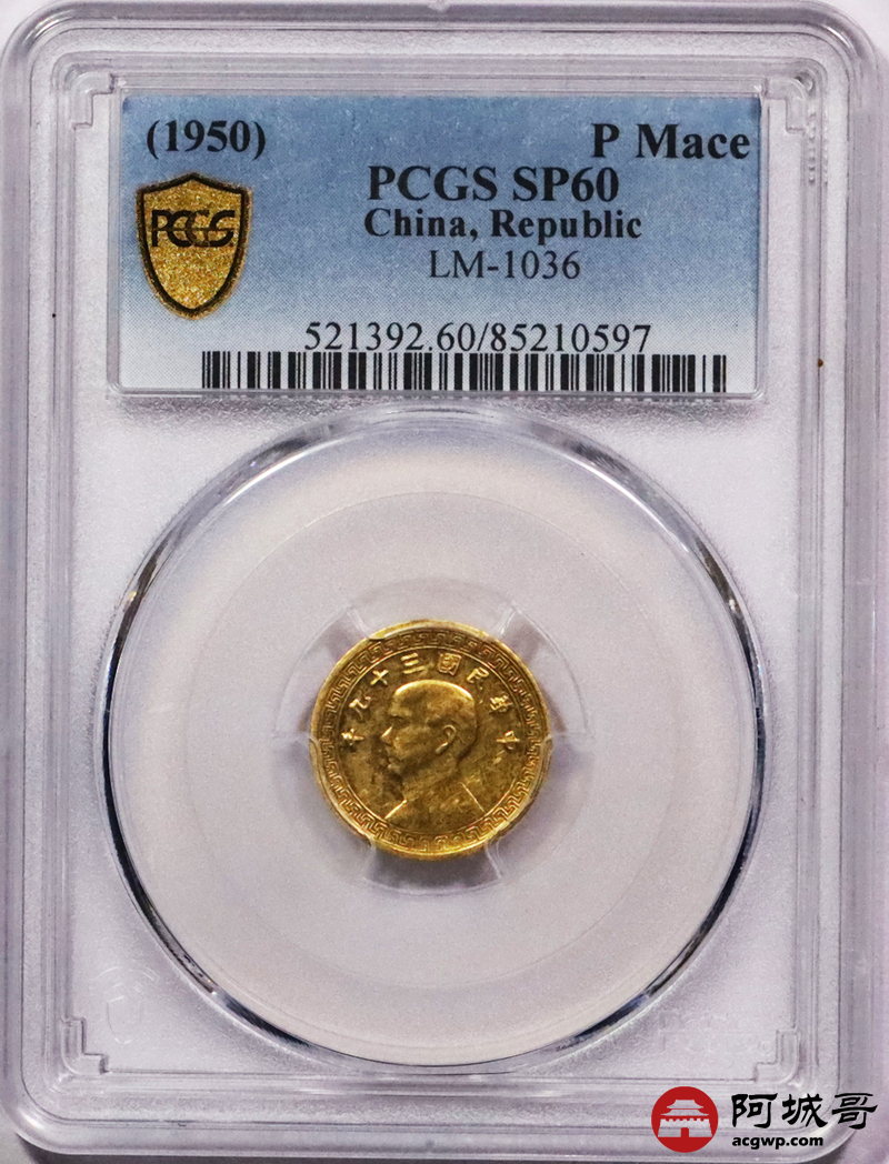 Lot:3217 1950民国三十九年孙中山像背布图足金壹钱金质样币,金光四溢 底板莹润 PCGS SP60 评级编号:85210597
