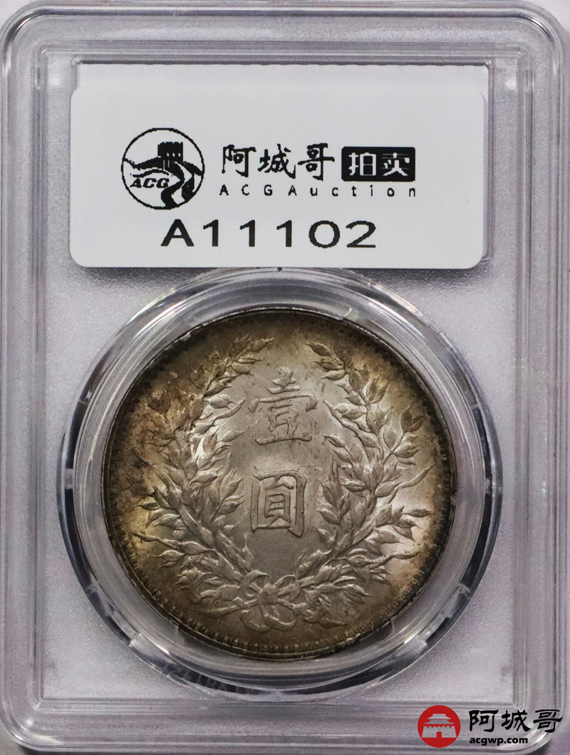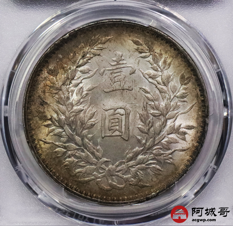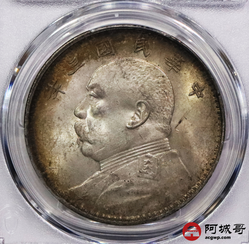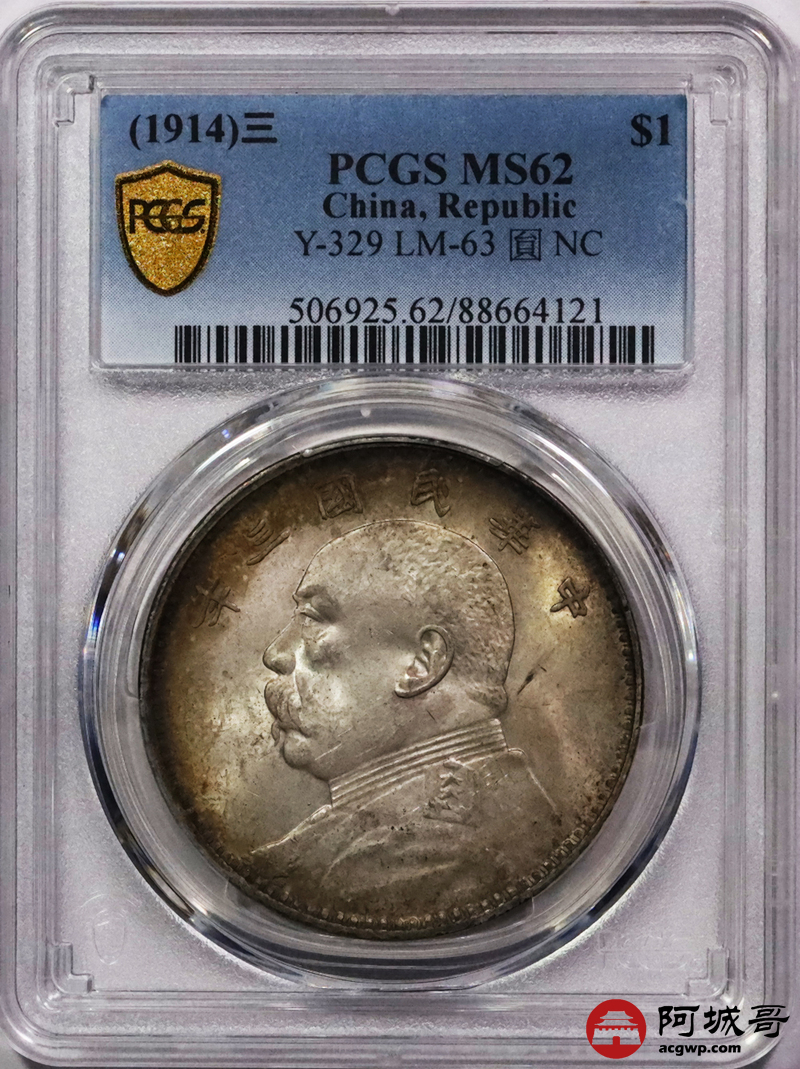 Lot:3490 1914民国三年袁世凯像壹圆银币一枚,黄油原光,环彩包浆 PCGS MS62