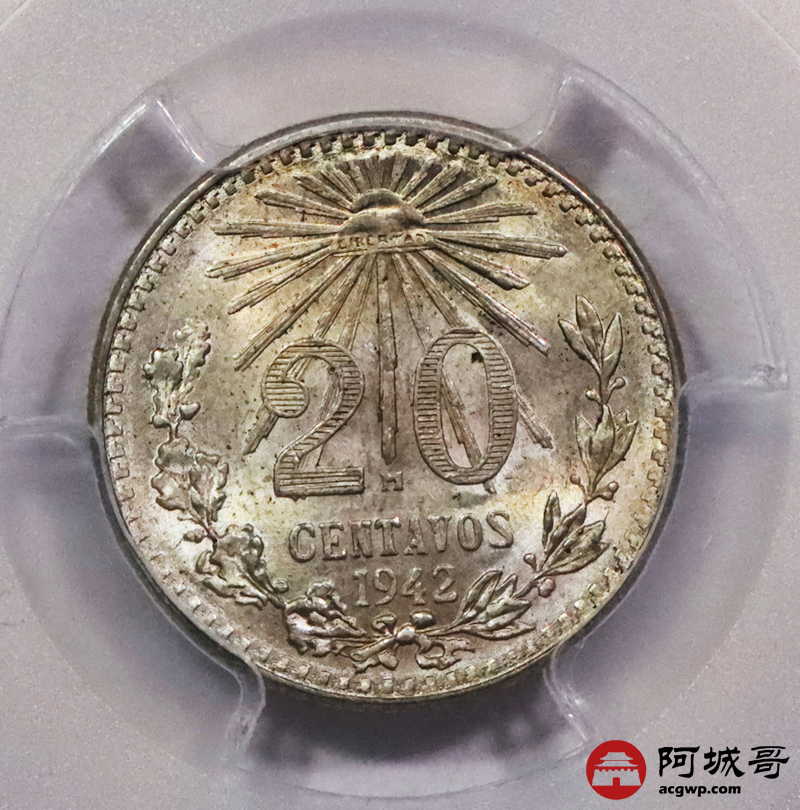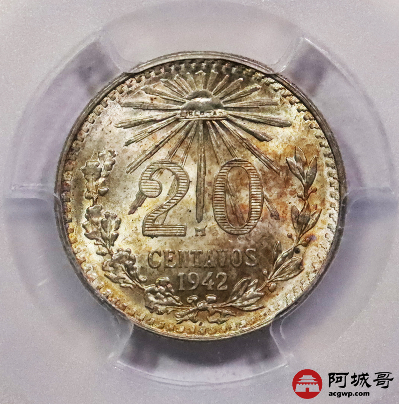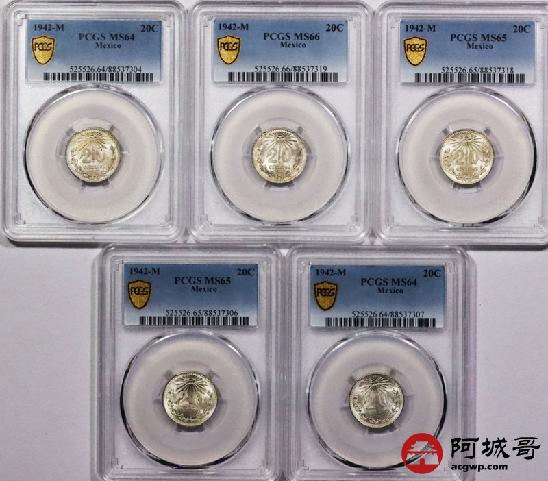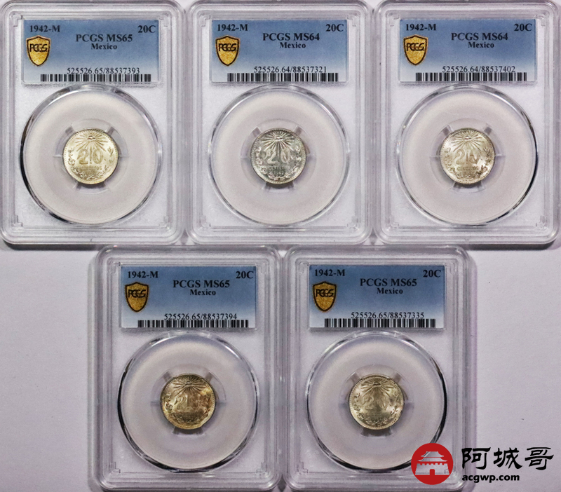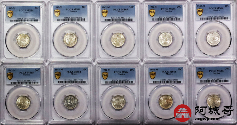 Lot:3764 1942墨西哥鹰洋20C银币十枚一组,PCGS MS64 65 66