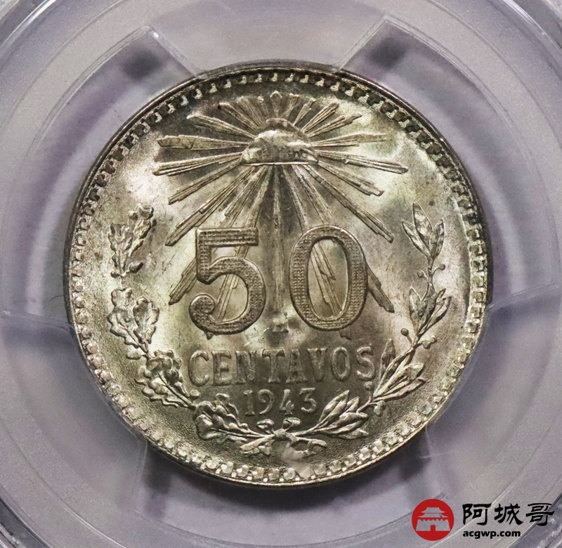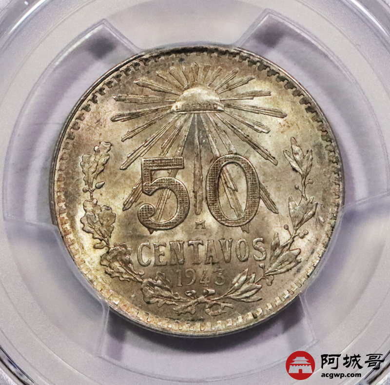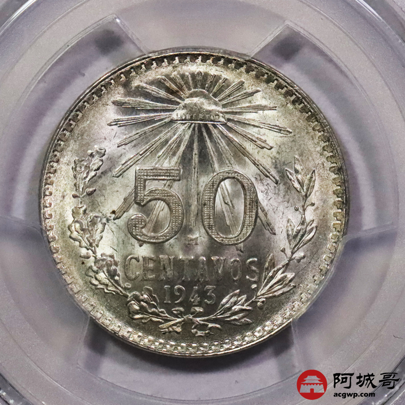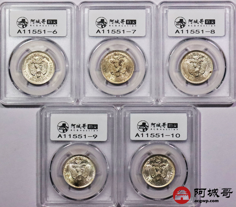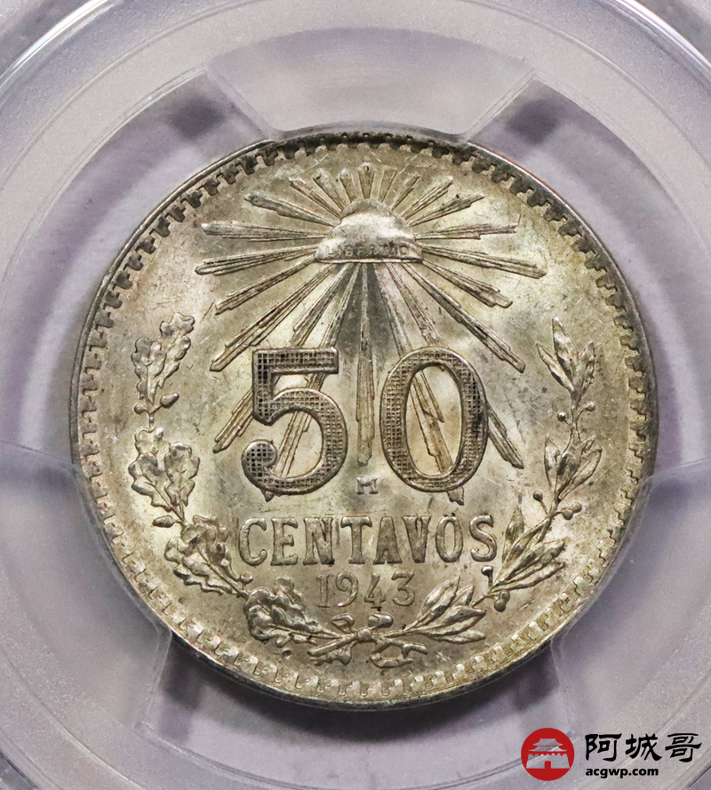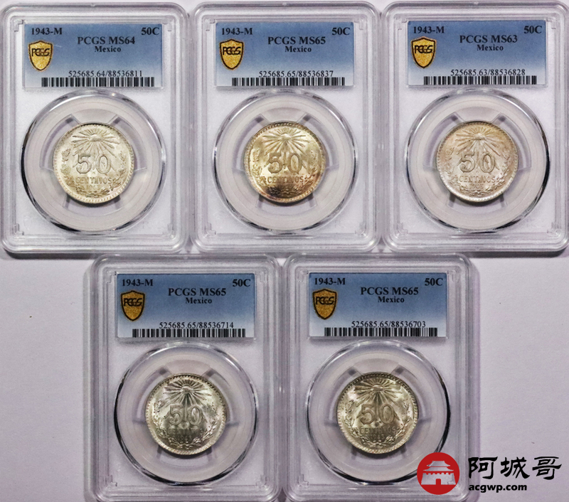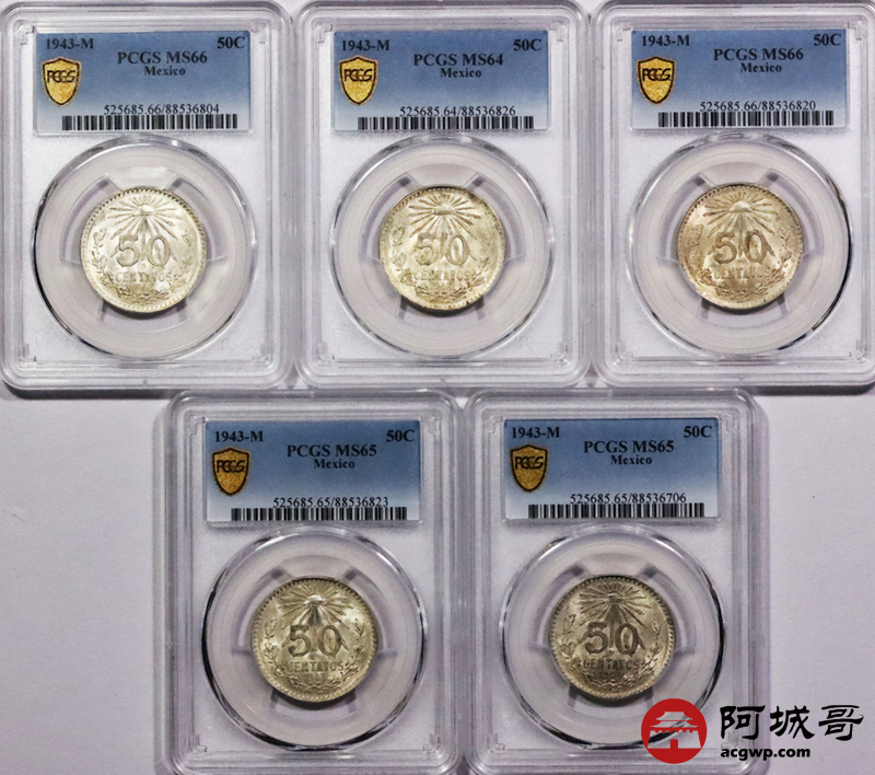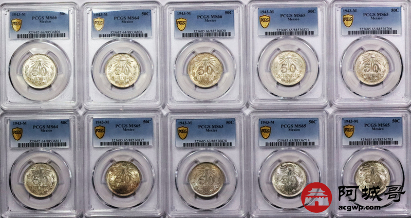 Lot:3762 1943墨西哥鹰洋50C银币十枚一组,PCGS MS63 64 65 66