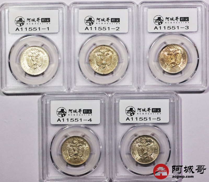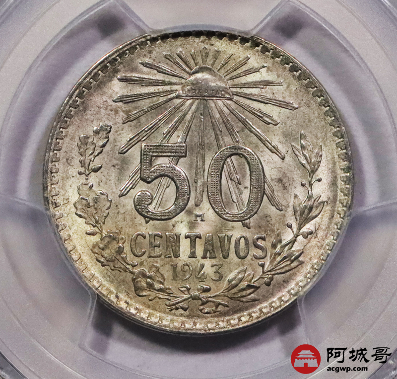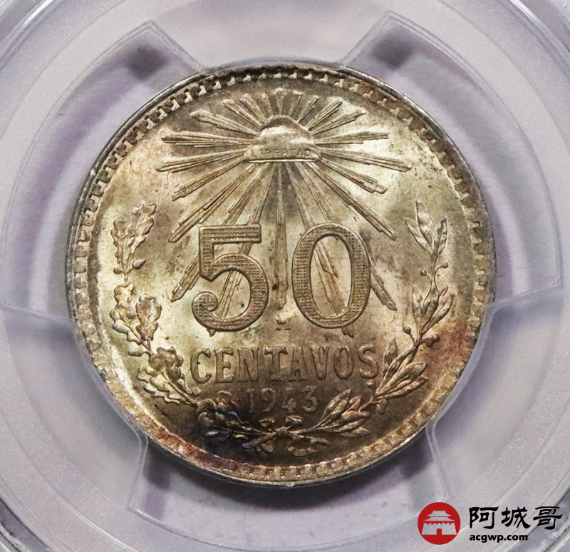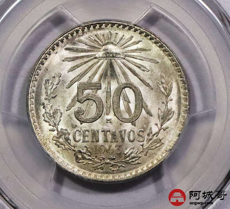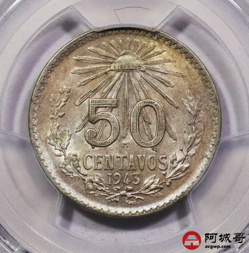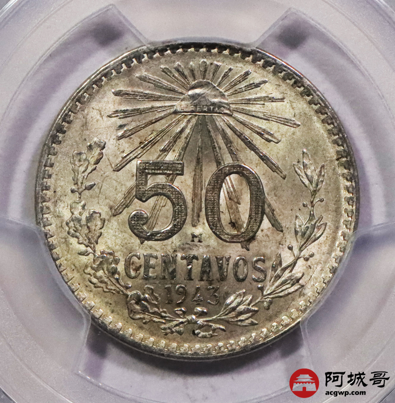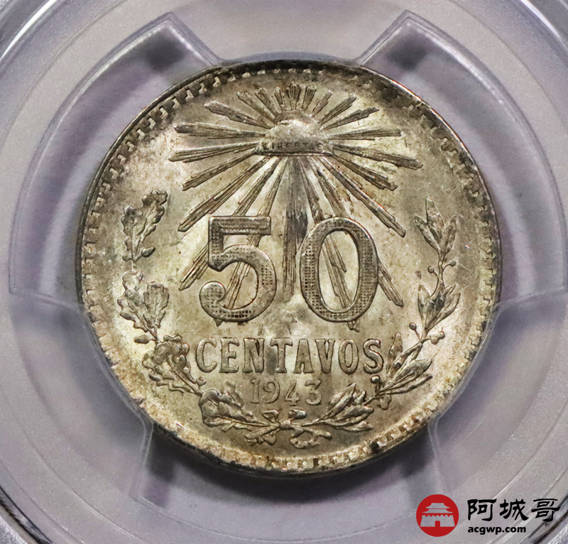 Lot:3762 1943墨西哥鹰洋50C银币十枚一组,PCGS MS63 64 65 66