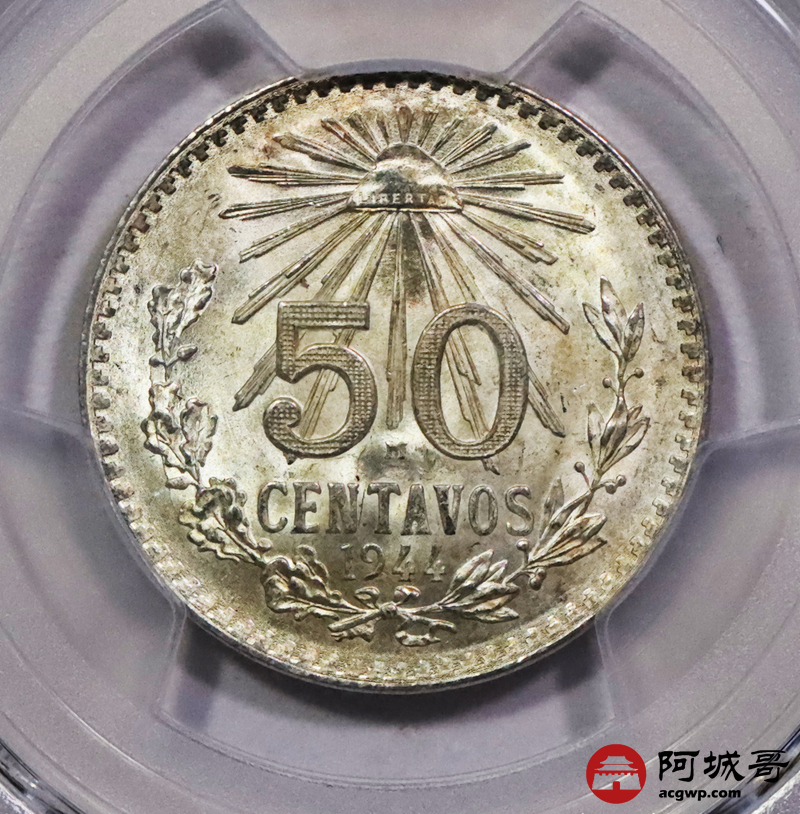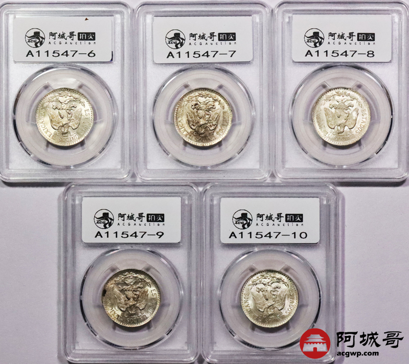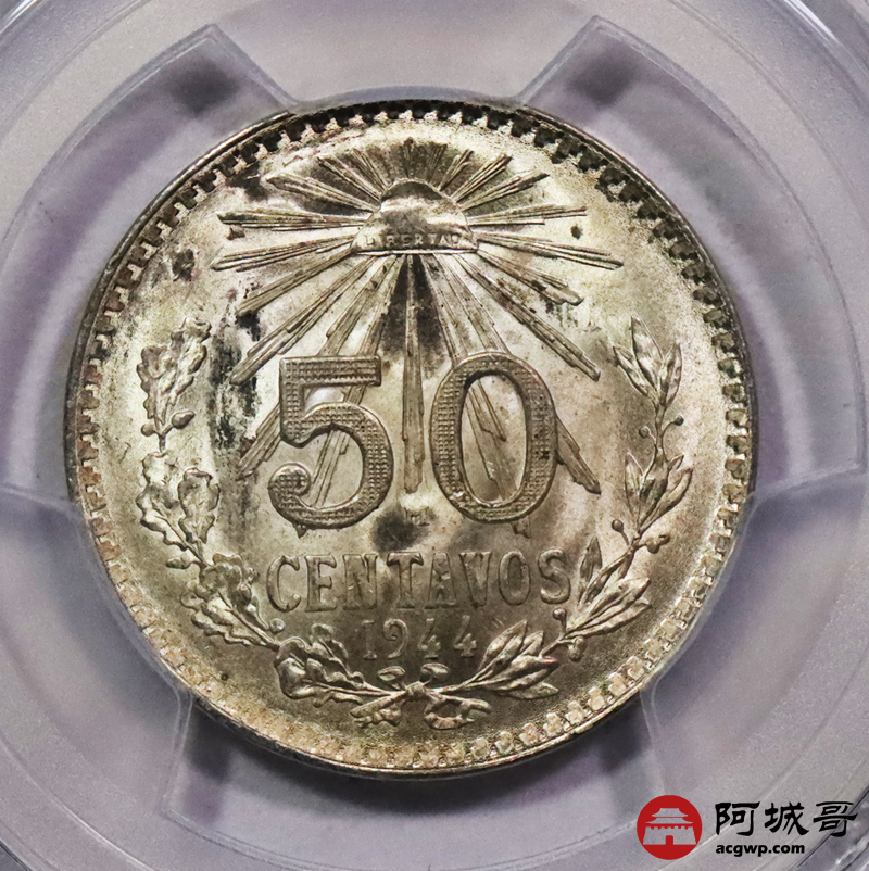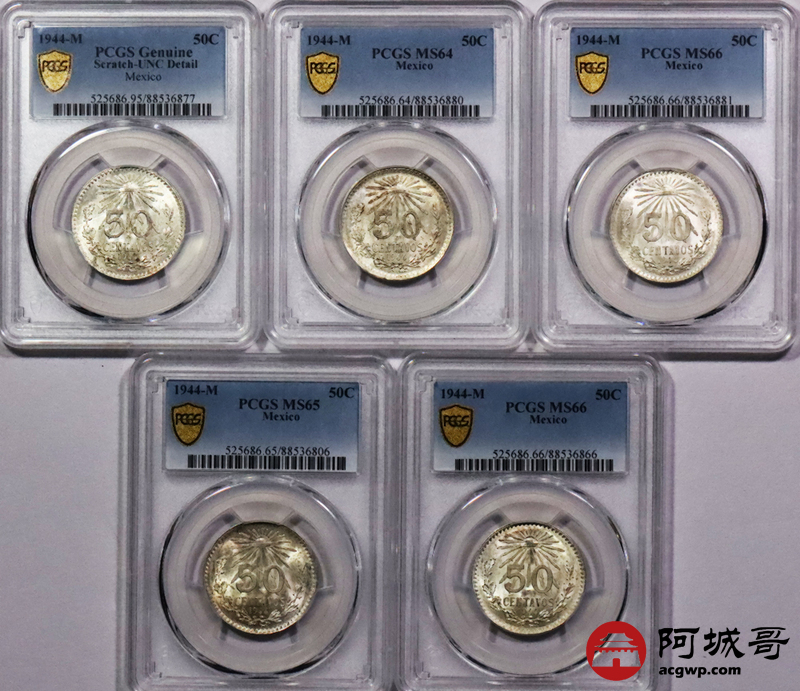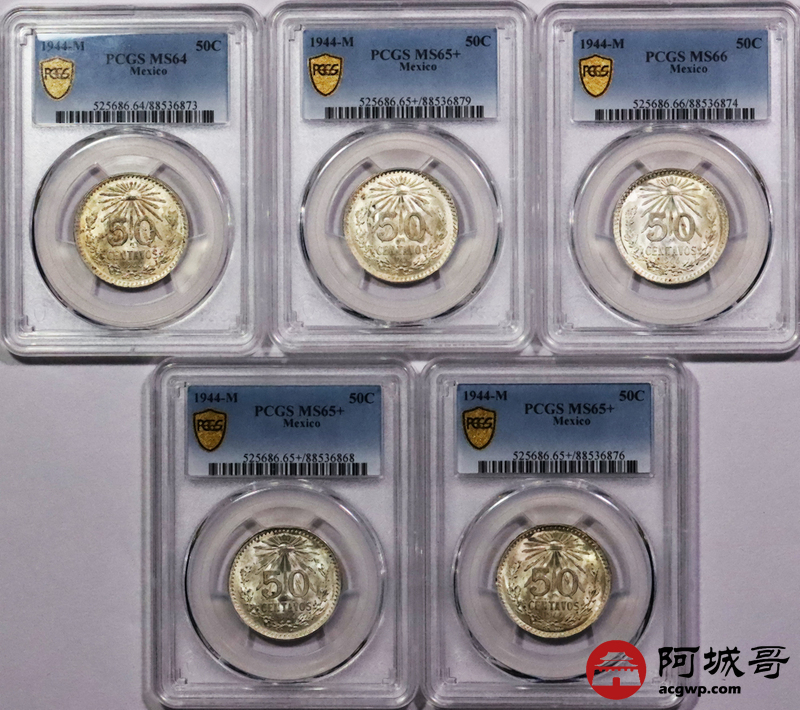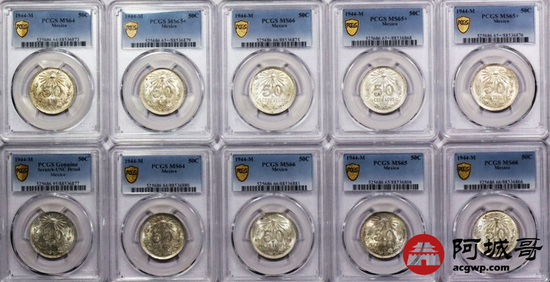 Lot:3769 1944墨西哥鹰洋50C银币十枚一组,PCGS UNC MS64 65 65+ 66
