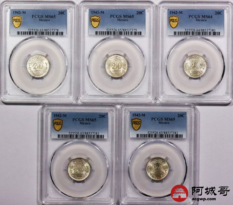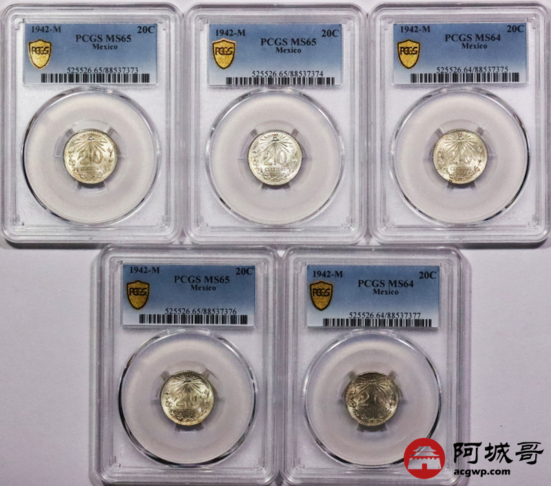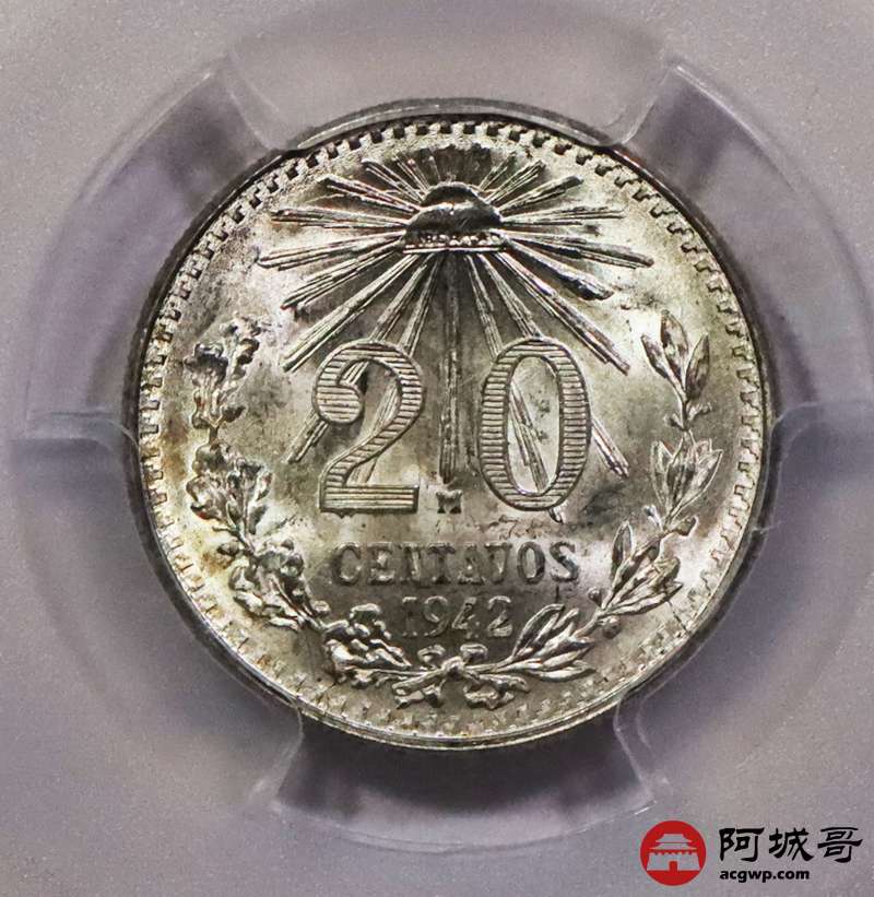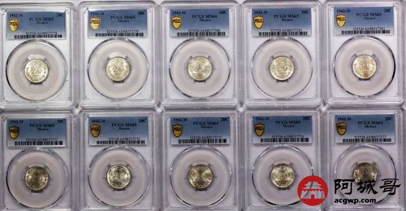 Lot:3765 1942墨西哥鹰洋20C银币十枚一组,PCGS MS64 65