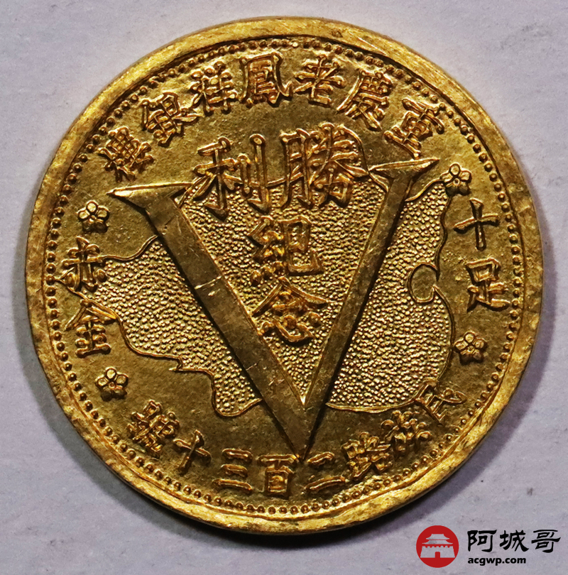 Lot:3651 老凤祥银楼24K十足赤金 勝利纪念31.3g金币一枚