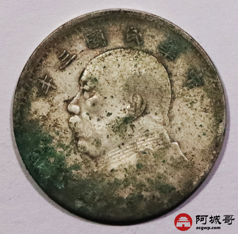 Lot:3779 1914民国三年袁世凯像壹圆银币一枚,窖藏薄锈,光边移位,极少见