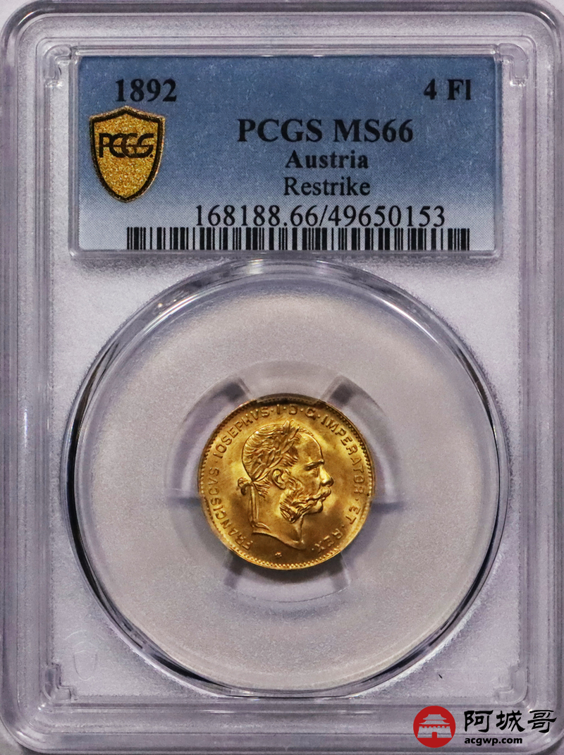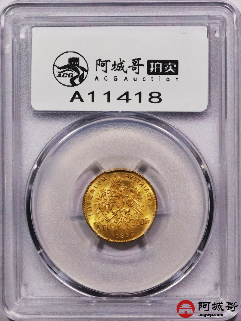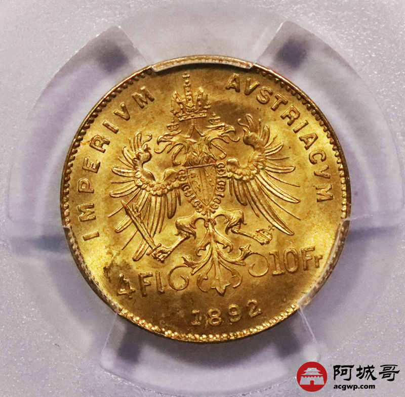 Lot:3674 1892年奥地利国王弗朗茨·约瑟夫一世像背双头鹰10法郎金币一枚PCGS MS66评级编号:49650153