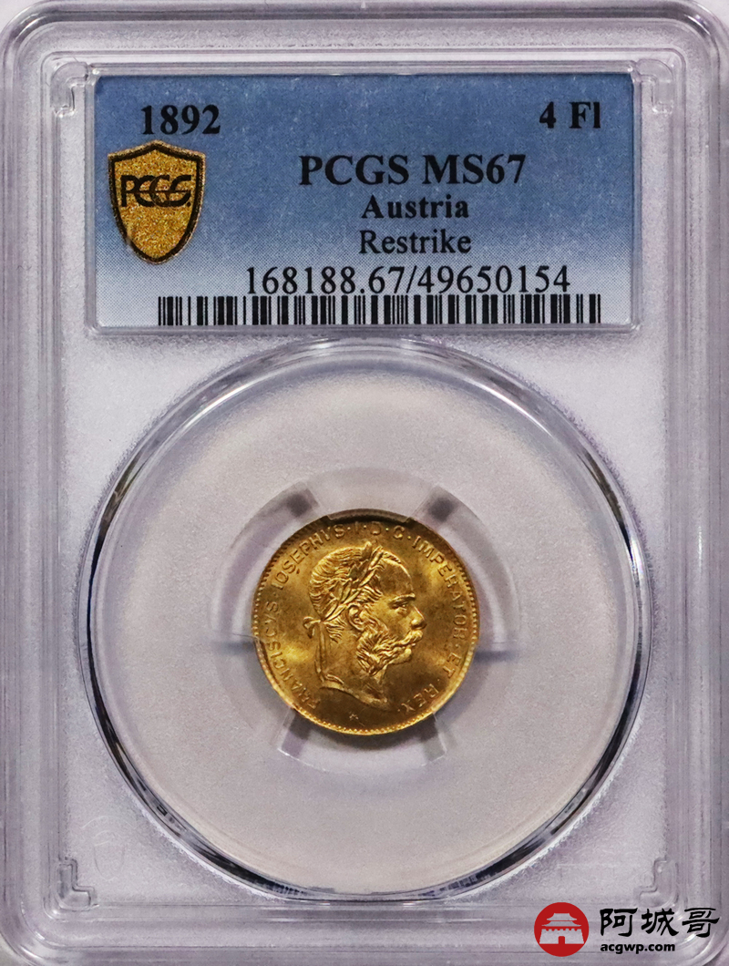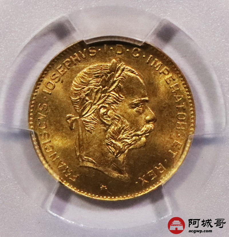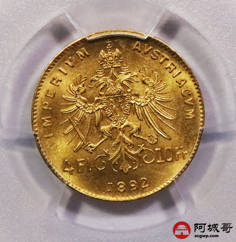 Lot:3673 1892年奥地利国王弗朗茨·约瑟夫一世像背双头鹰10法郎金币一枚PCGS MS67评级编号:49650154