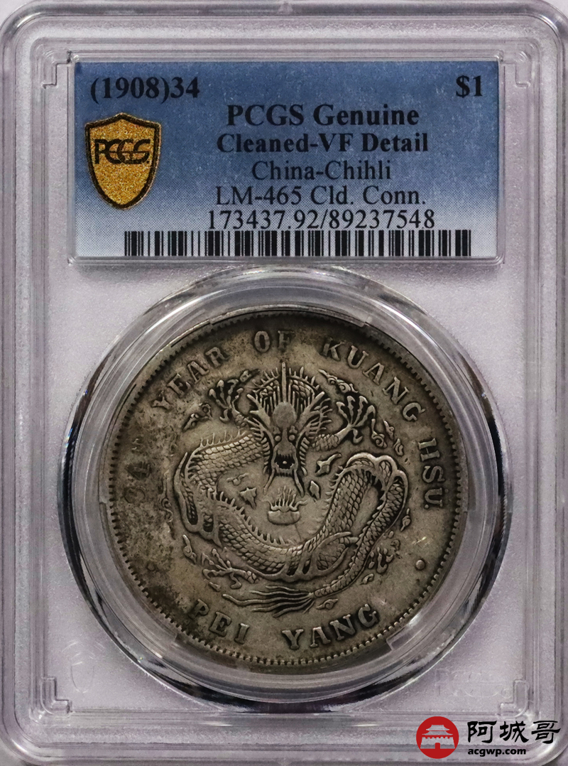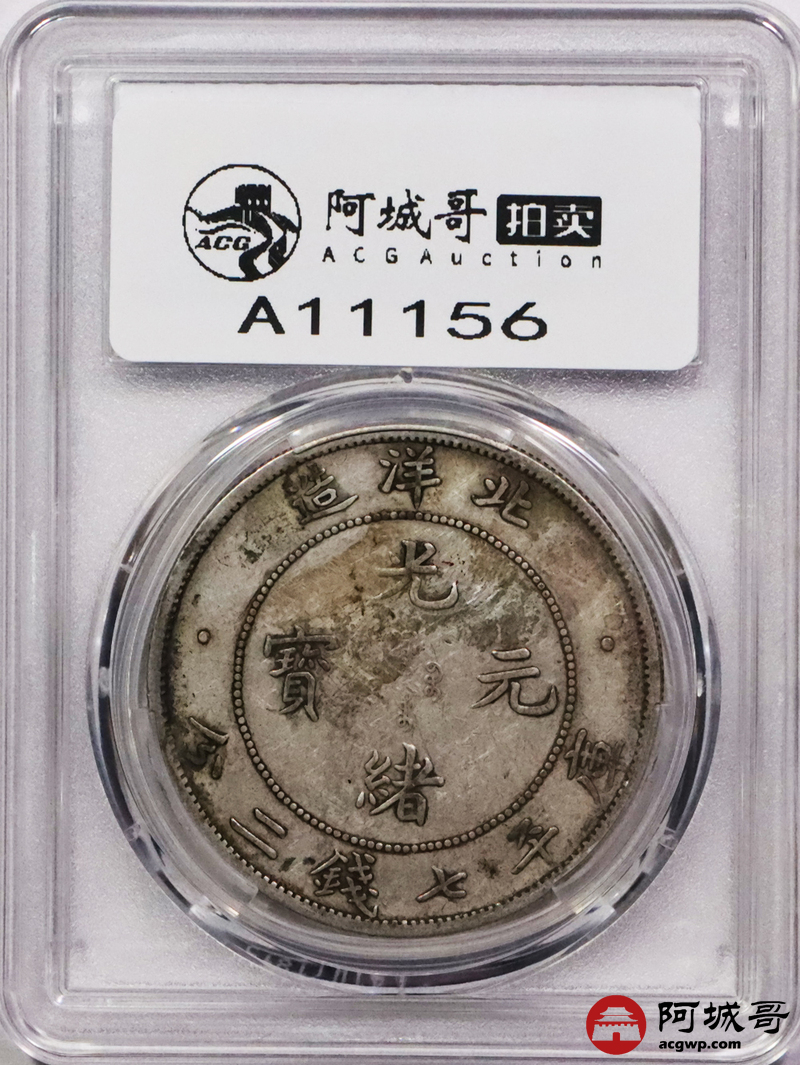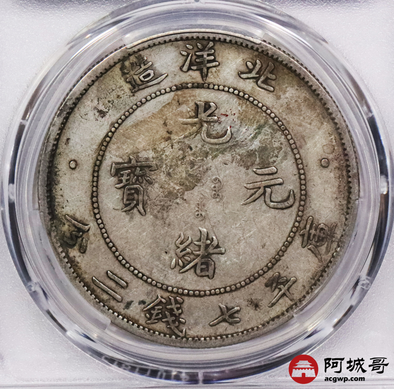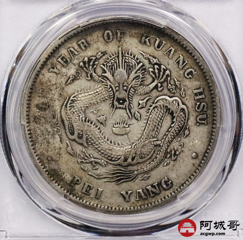 Lot:3337 1908光绪三十年北洋造光绪元宝库平七钱二分银币一枚,原味老包浆PCGS VF评级编号:89237548