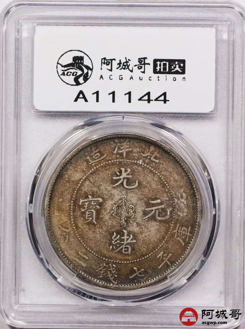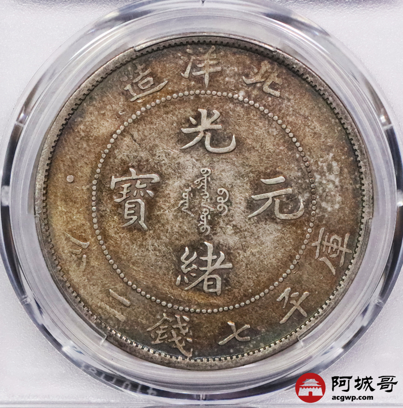 Lot:3349 1908光绪三十四年北洋造光绪元宝库平七钱二分银币一枚,原味五彩PCGS XF评级编号:89237490