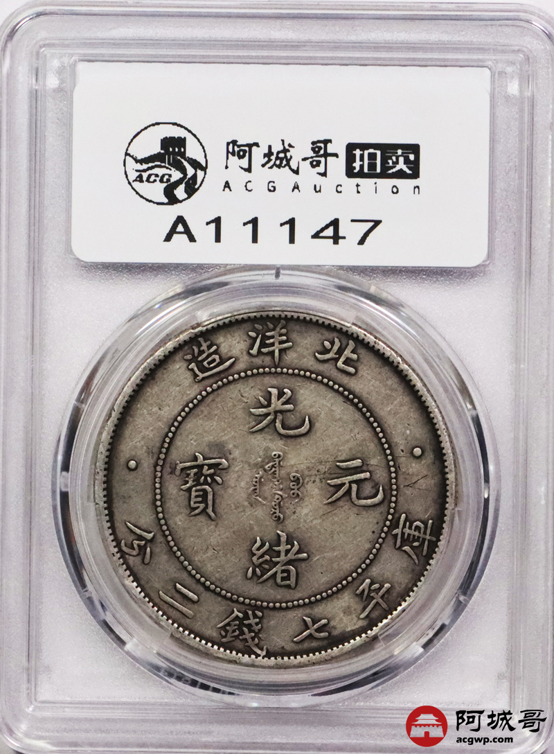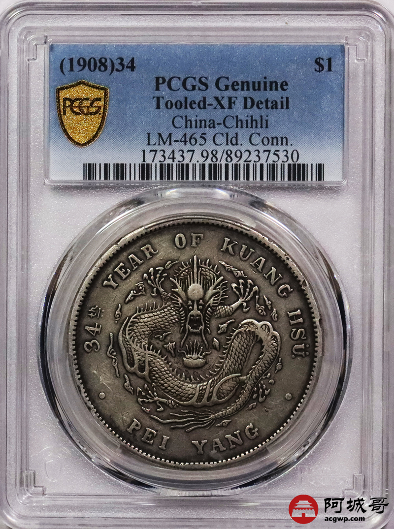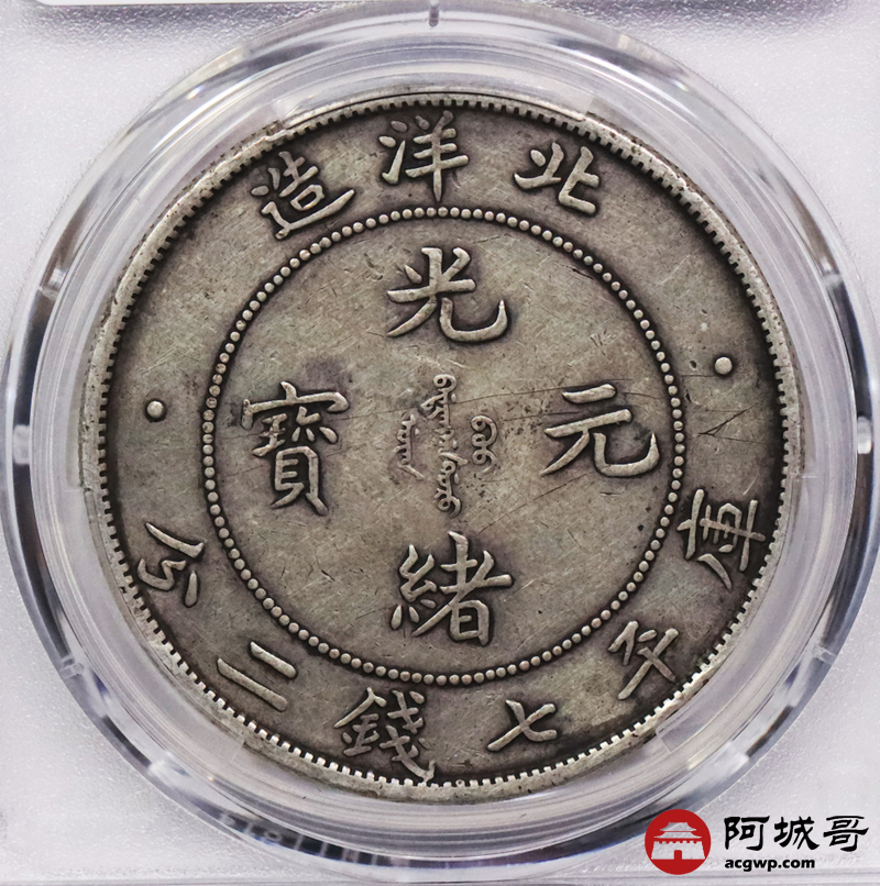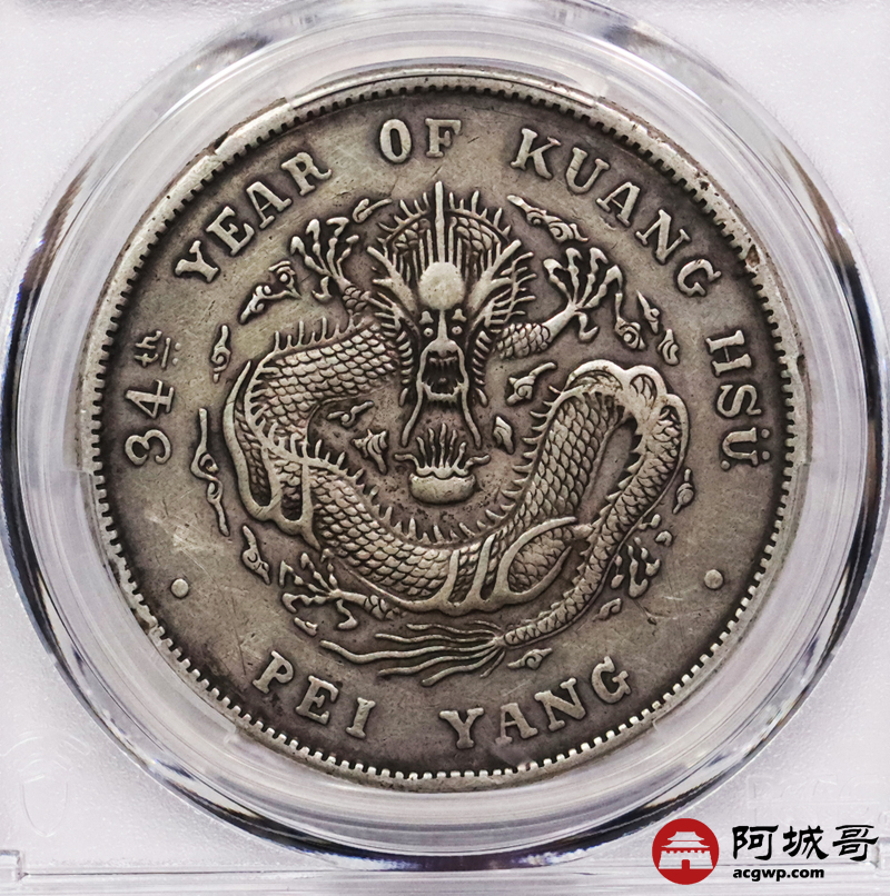 Lot:3338 1908光绪三十四年北洋造光绪元宝库平七钱二分银币一枚,原味老包浆PCGS XF评级编号:89237530