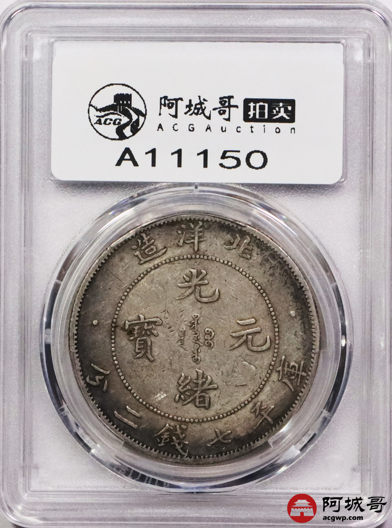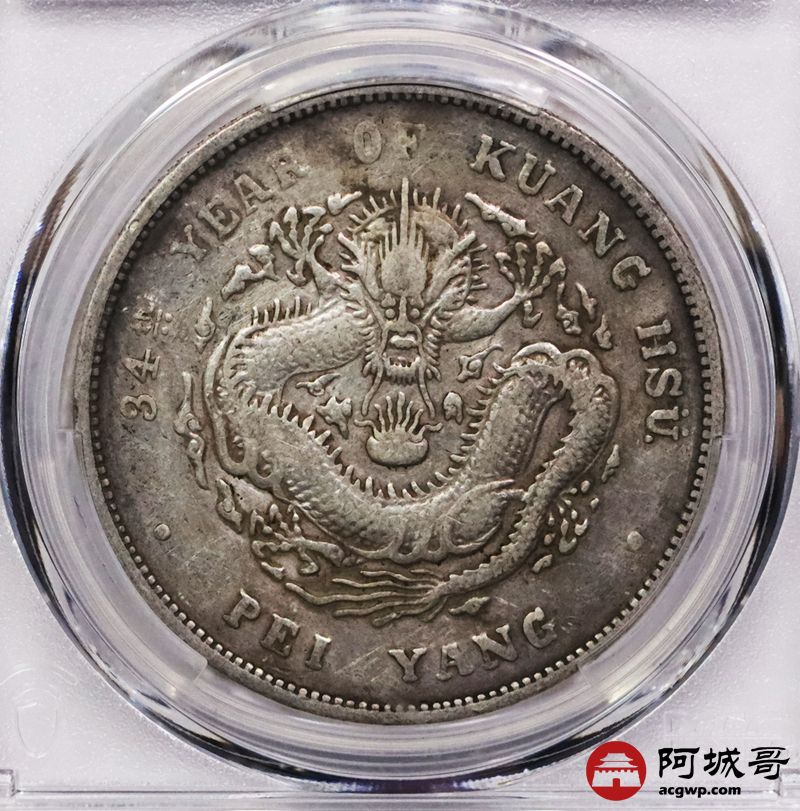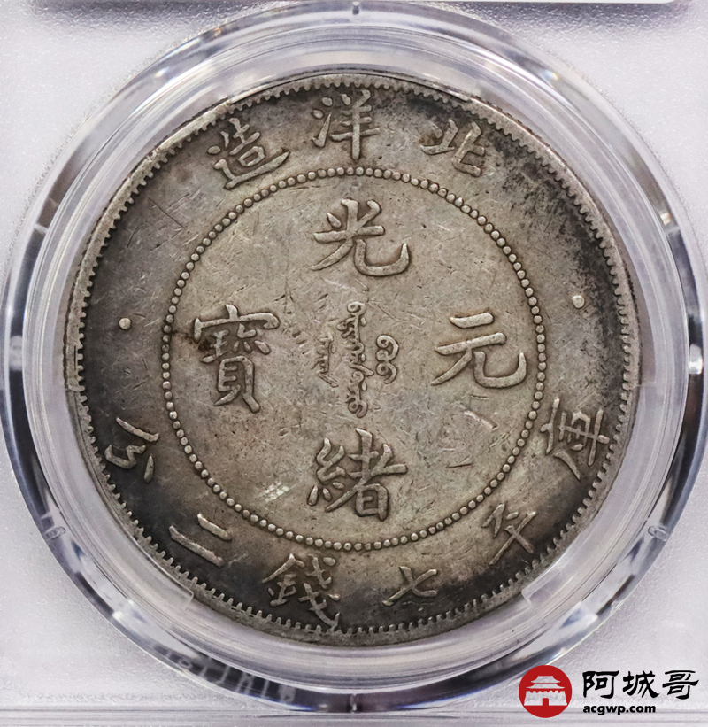 Lot:3344 1908光绪三十四年北洋造光绪元宝库平七钱二分银币一枚,原味老包浆,小字版 PCGS VF