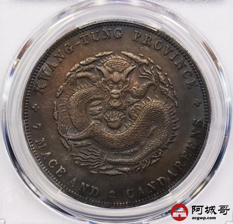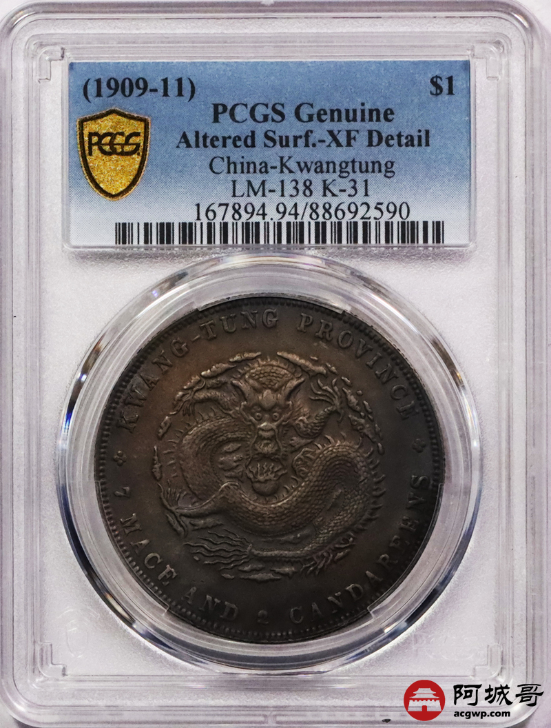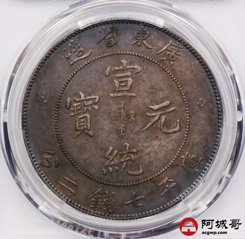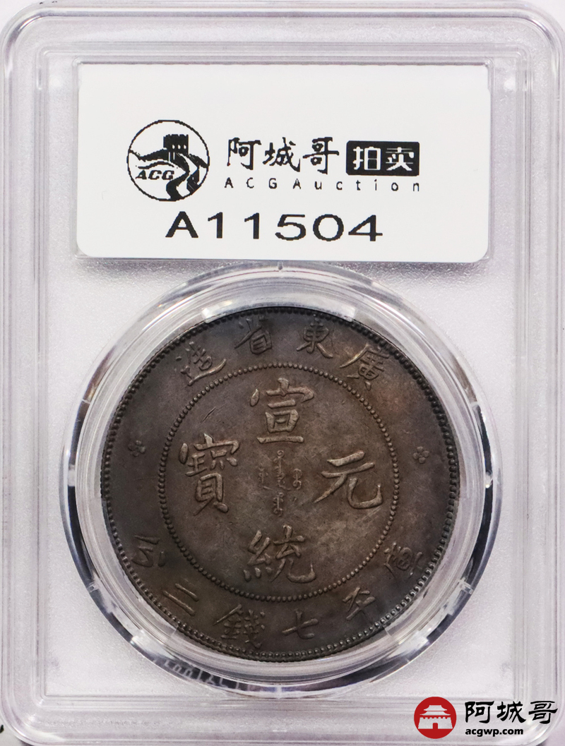 Lot:3391 1909-11湖北省造宣统元宝库平七钱二分银币一枚,五彩包浆PCGS XF评级编号:88692590