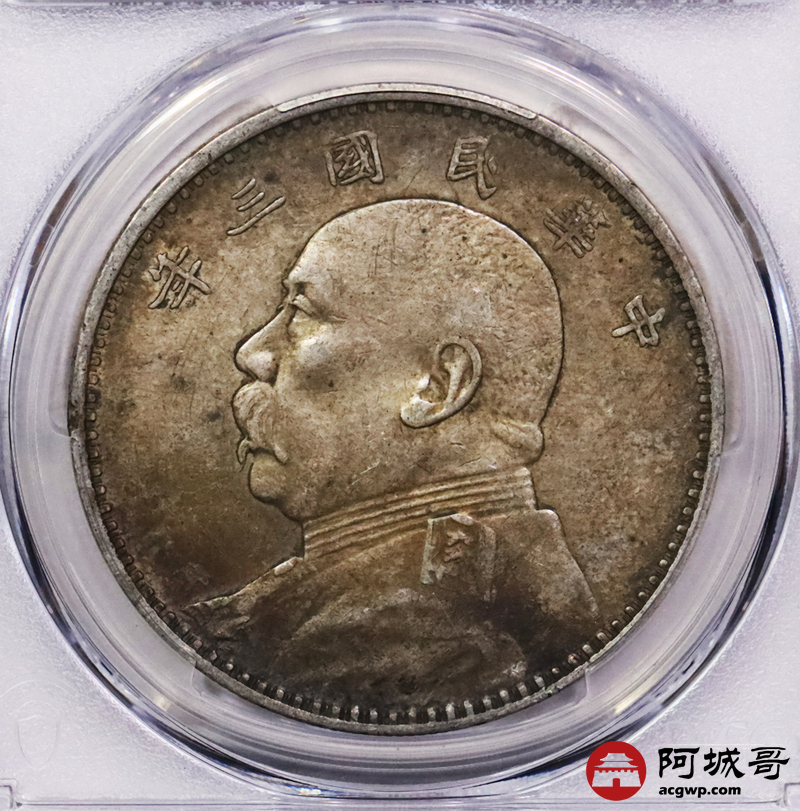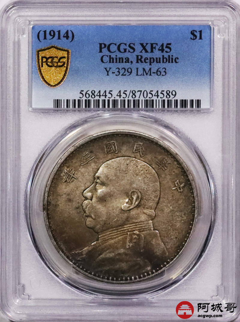 Lot:3505 1914民国三年袁世凯像壹圆银币一枚,老包浆 PCGS XF45评级编号:87054589