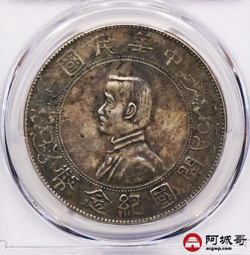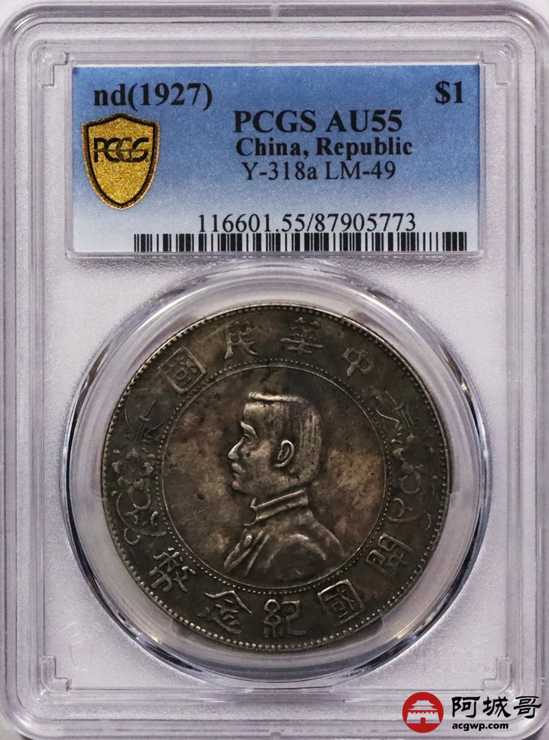 Lot:3114 1927孙中山像开国纪念币壹圆银币一枚,酱彩老包浆PCGS AU55评级编号:87905773