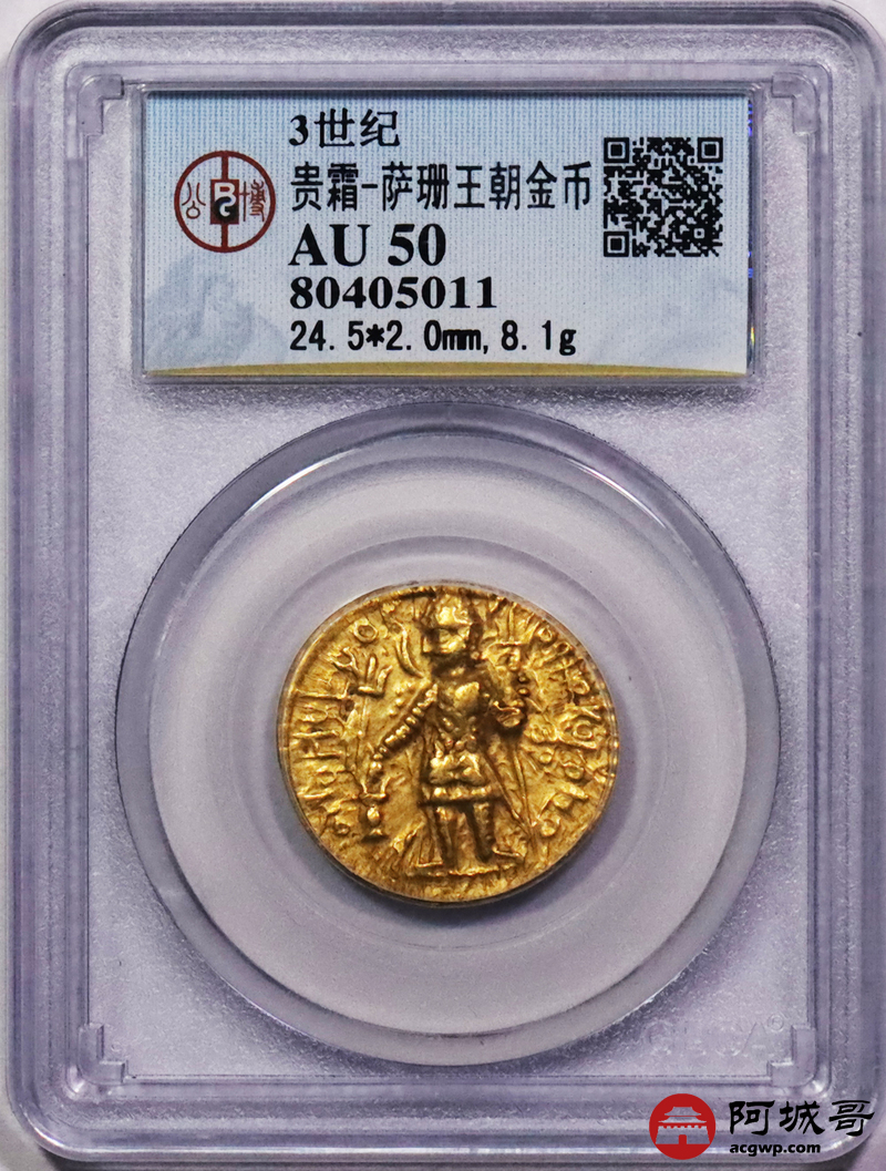 Lot:3682 3世纪贵霜-萨珊王朝金币一枚8.1g GBCA AU50评级编号:80405011