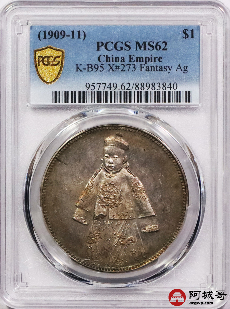 Lot:3435 1909-11宣统皇帝臆造银币一枚,铸造精美,油彩包浆 PCGS MS62
