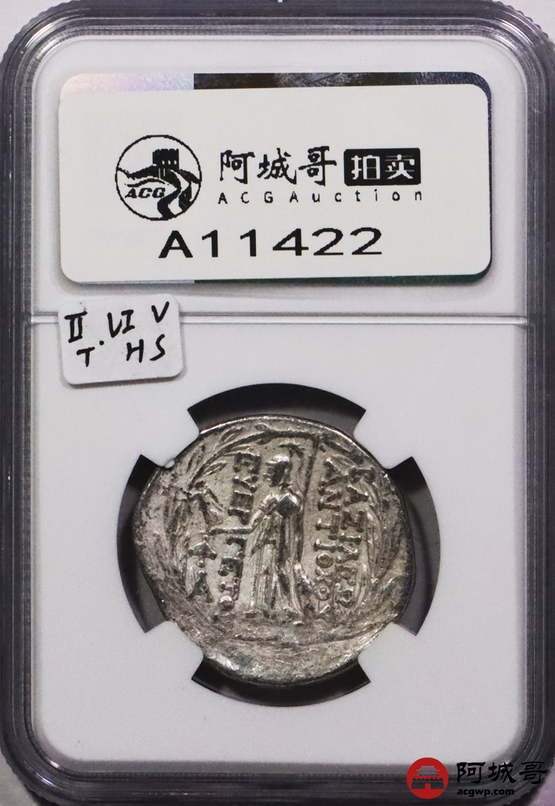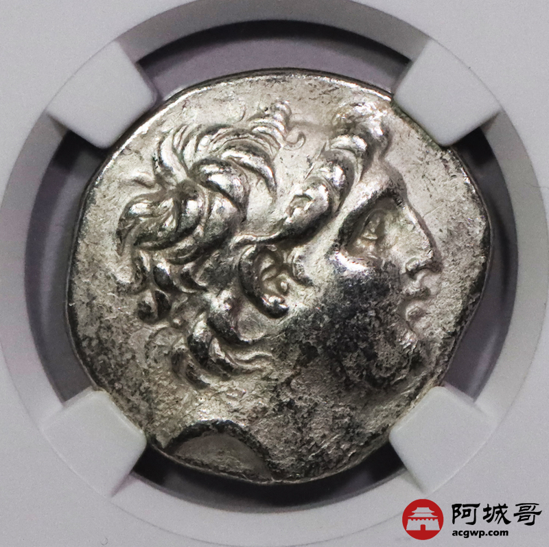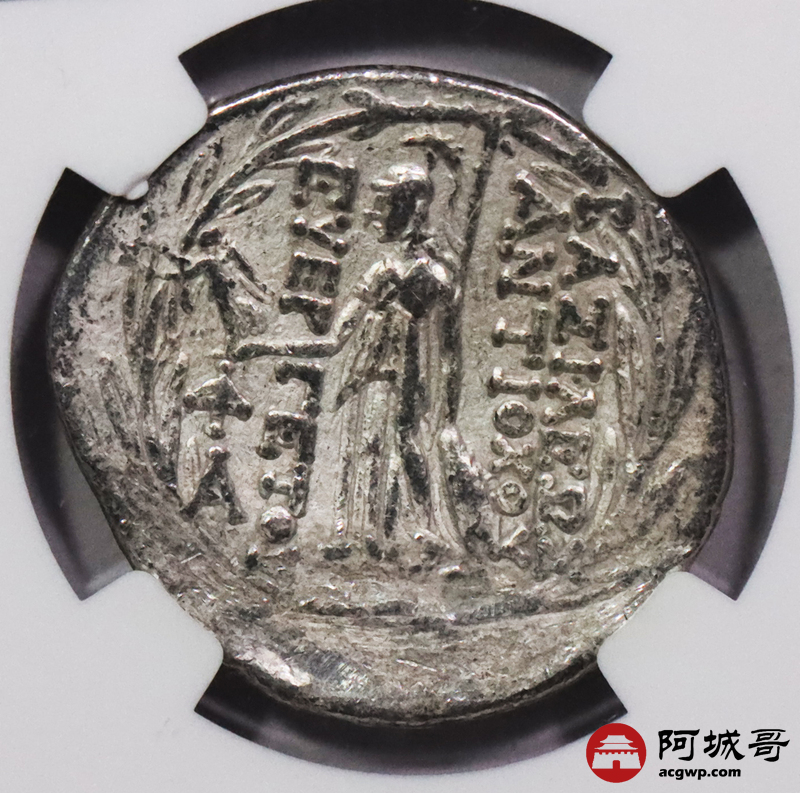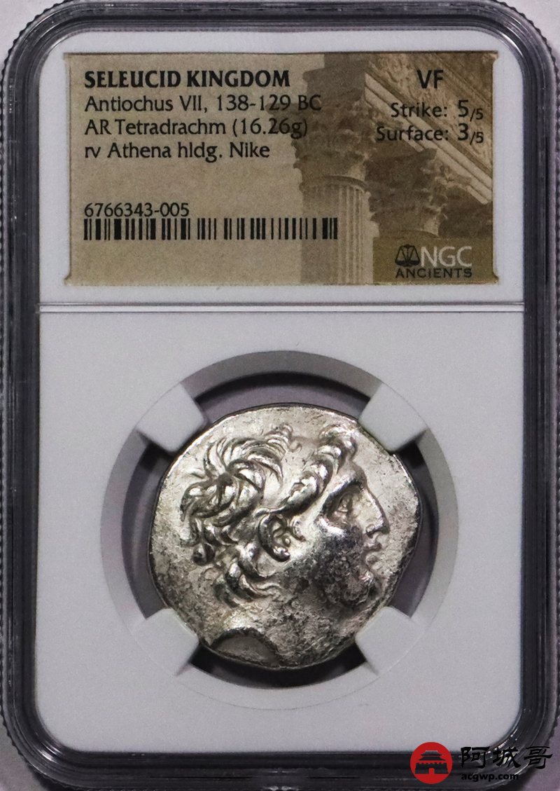 Lot:3715 公元前2世纪古希腊塞琉古王国安条克七世4德拉克马银币一枚,NGC VF评级编号哦啊:6766343-005