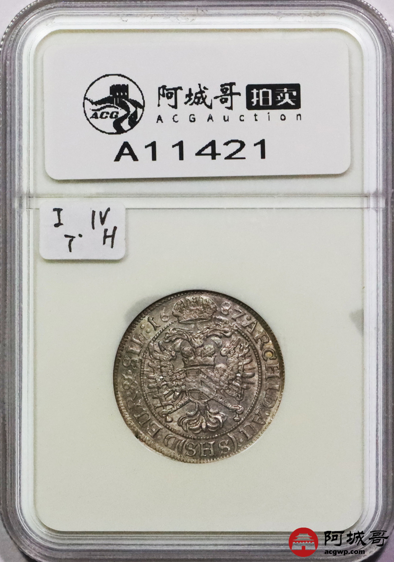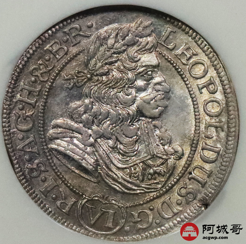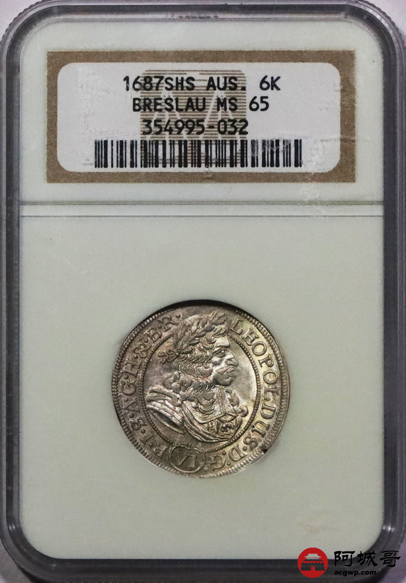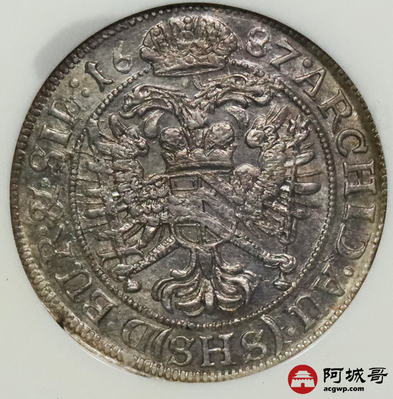 Lot:3689 1687奥地利神圣罗马帝国6K银币一枚,NGC MS65评级编号:354995-032
