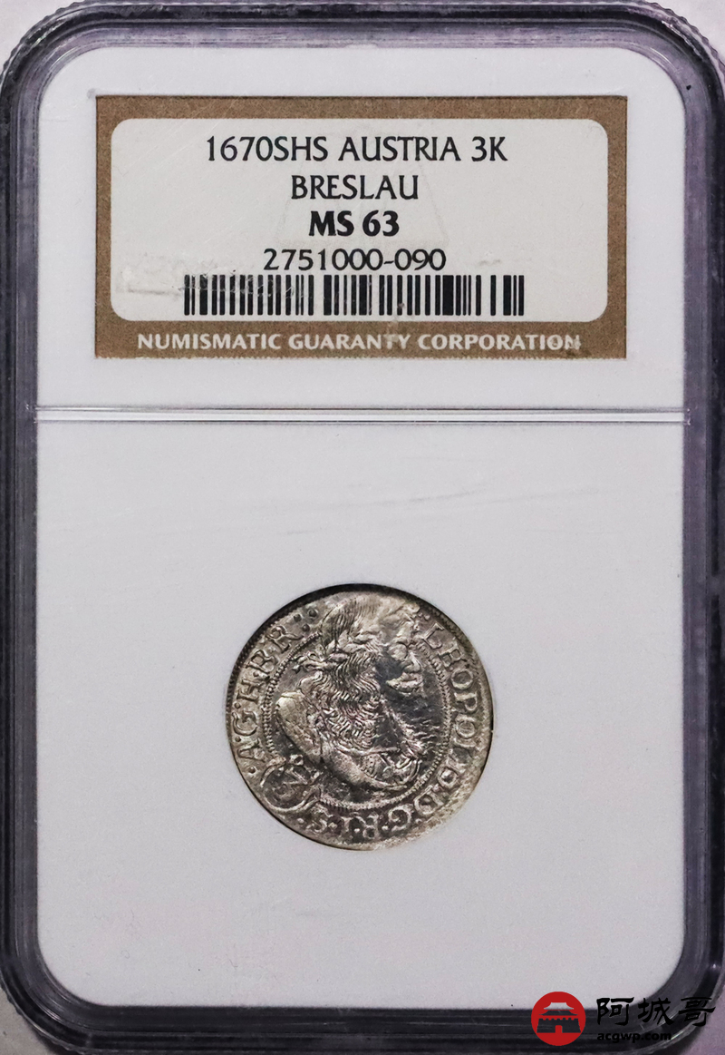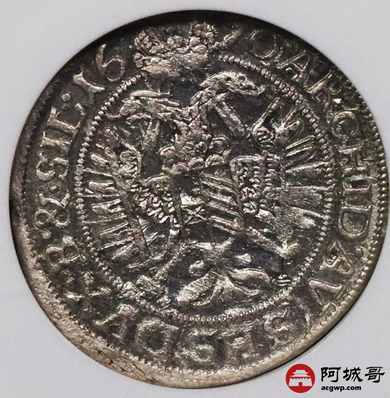 Lot:3690 1670奥地利神圣罗马帝国3K银币一枚,NGC MS63评级编号:2751000-090