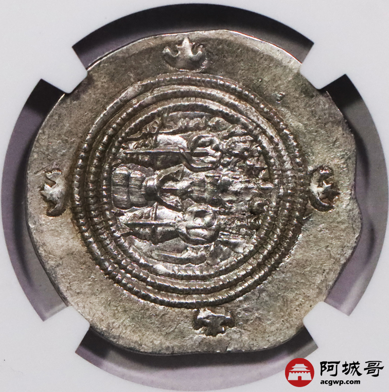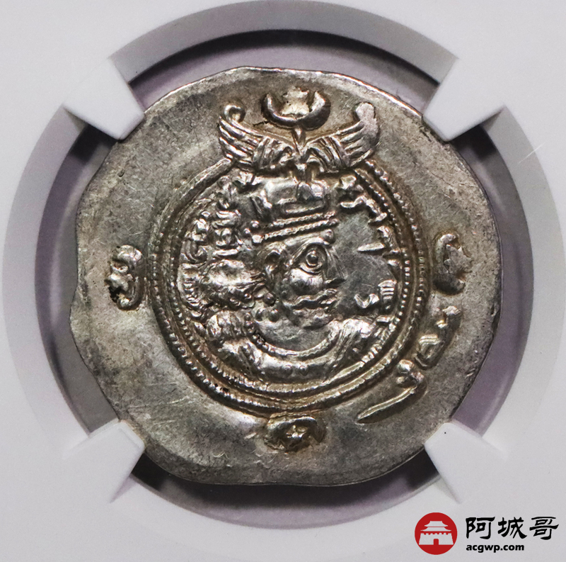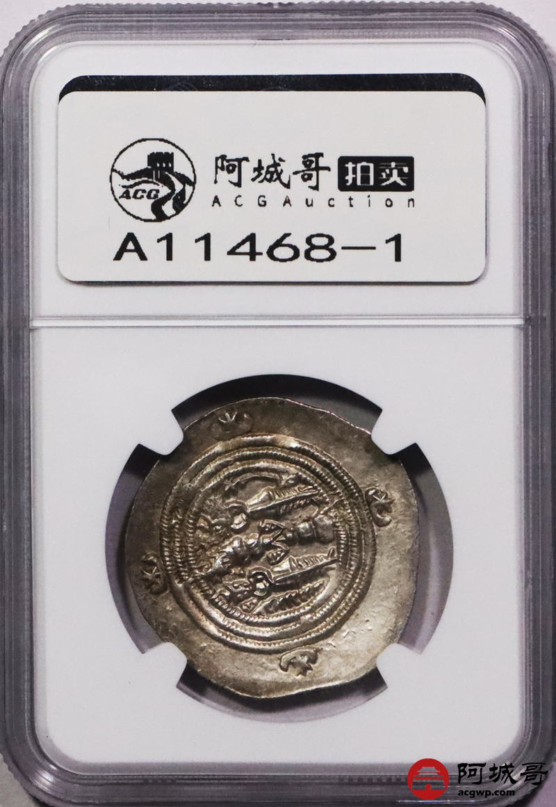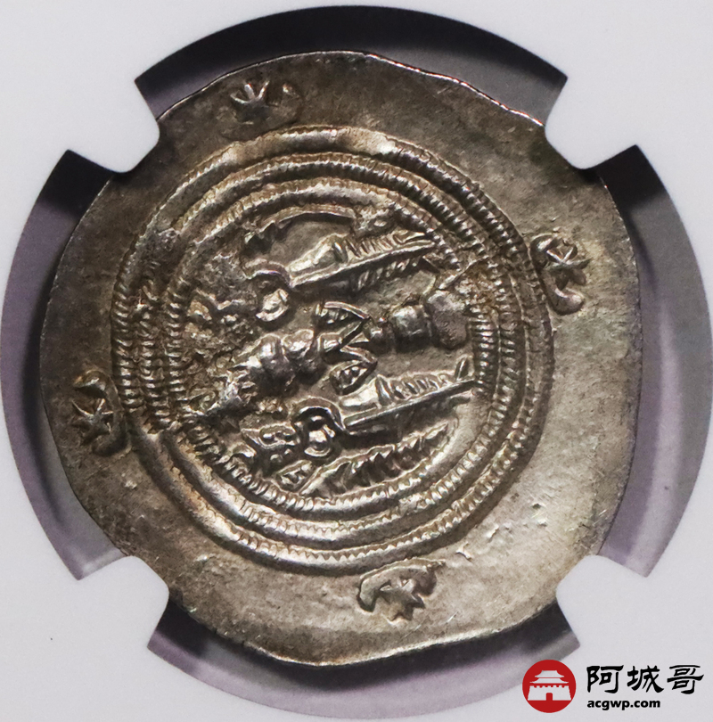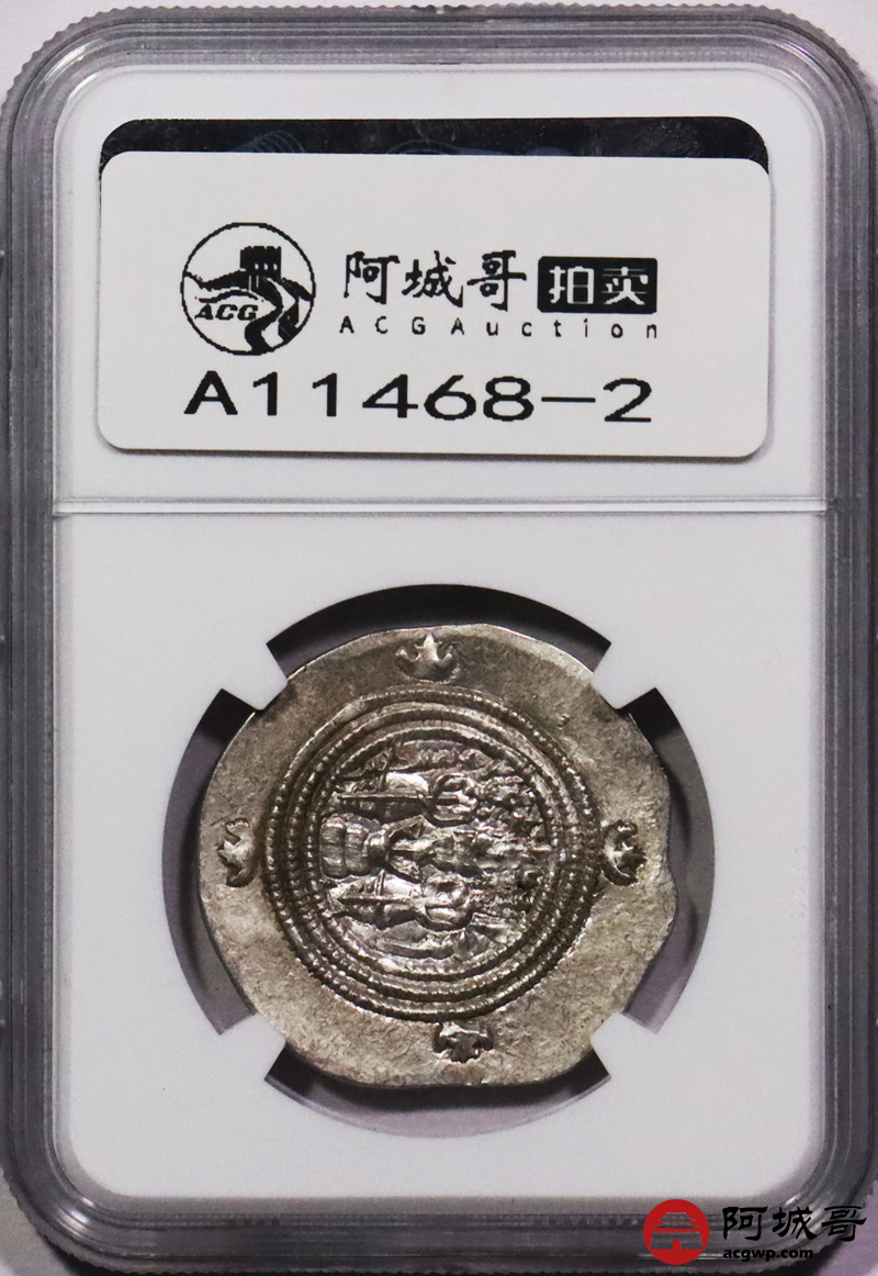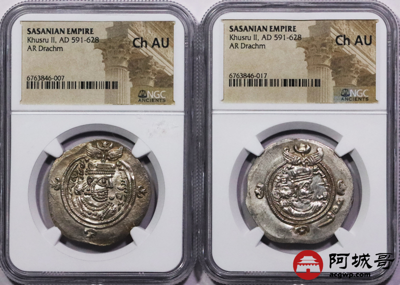 Lot:3726 公元六世纪波斯萨珊帝国库斯瑙二世银币 2枚一组 NGC Ch AU评级编号:6763846-017/6763846-007
