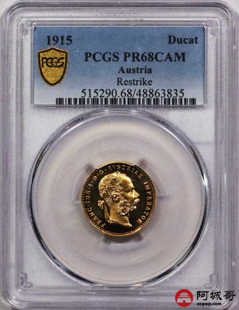Lot:3695 1915奥地利佛朗茨一世杜卡特金币一枚 PCGS PR68CAM评级编号:48863835