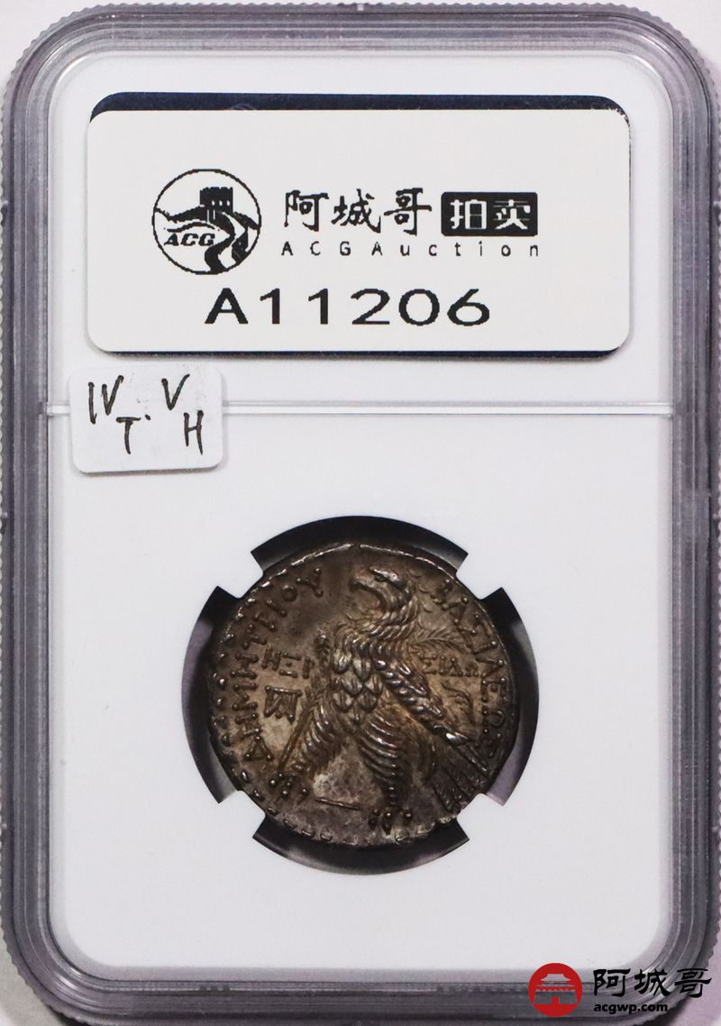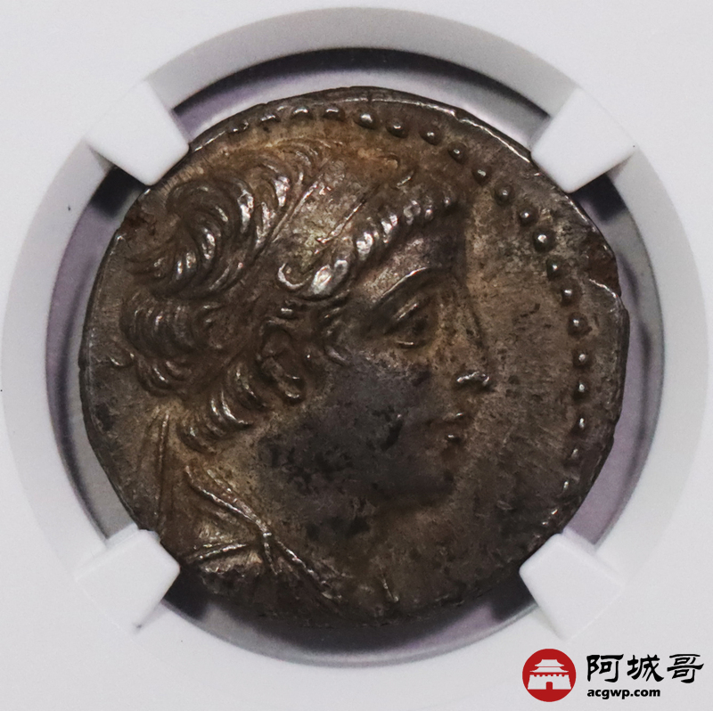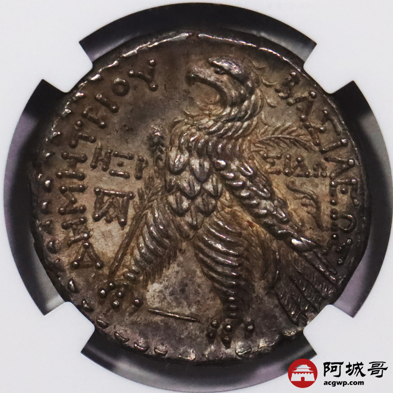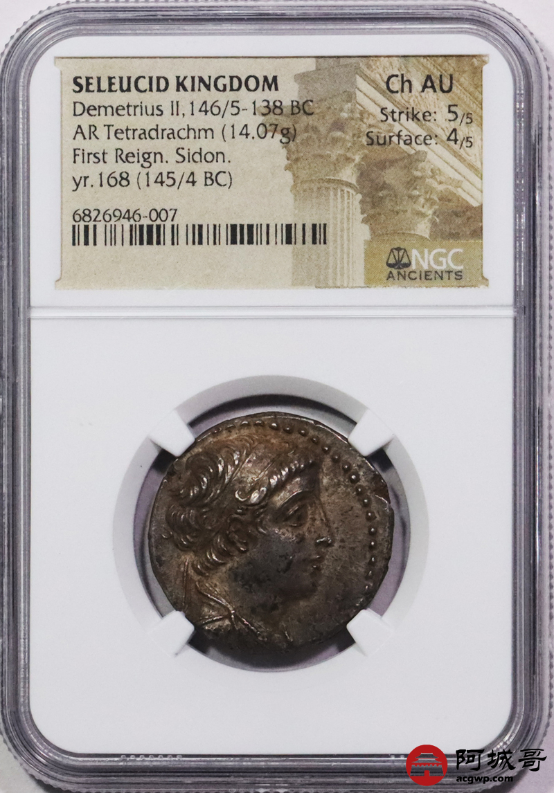 Lot:3707 公元前2世纪古希腊塞琉古帝国Demetrius二世4德银币一枚,NGC CH AU评级编号:6826946-007