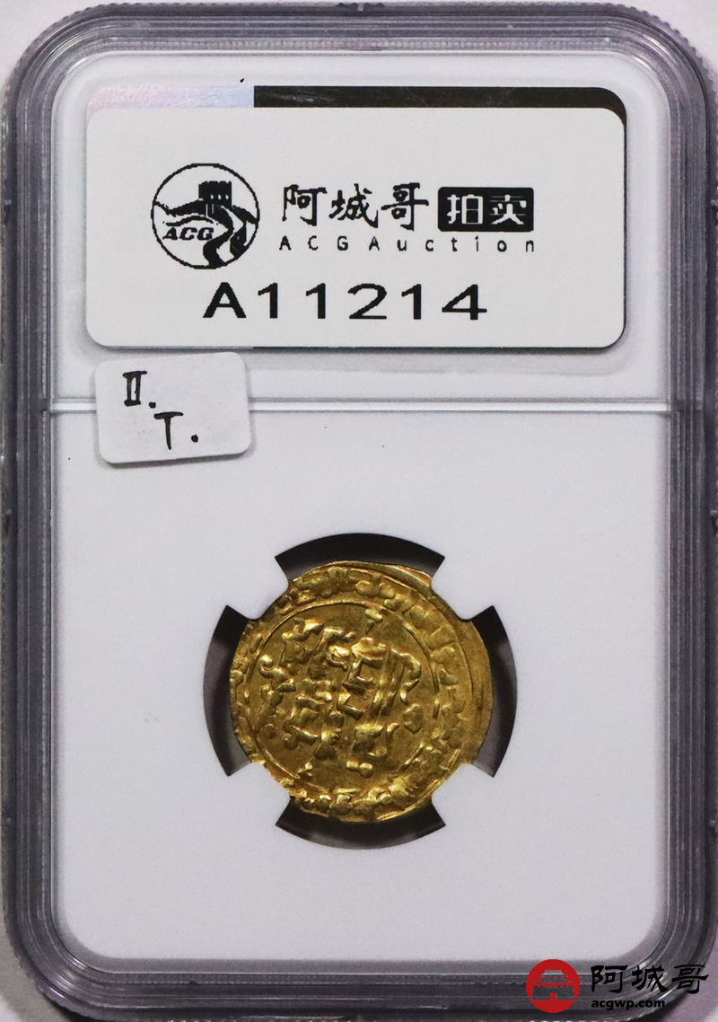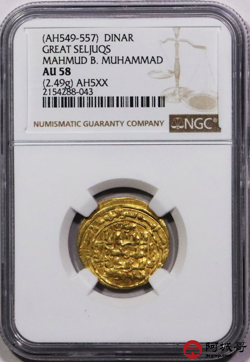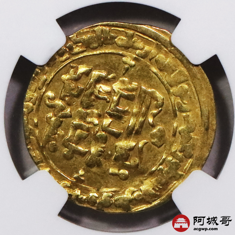 Lot:3661 公元12世纪丝路塞尔柱帝国穆罕默德国王第纳尔金币一枚(2.49g)NGC AU58评级编号:2154288-043
