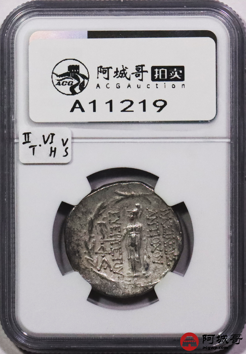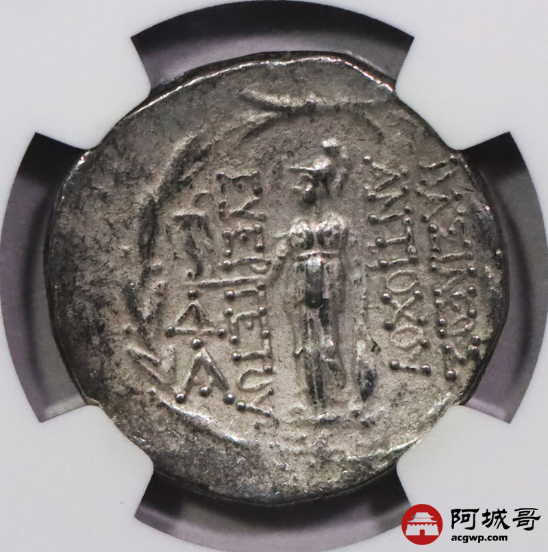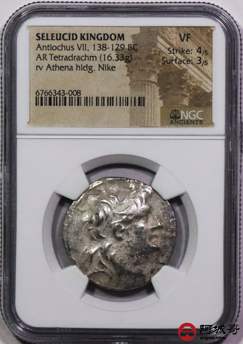 Lot:3710 公元前2世纪古希腊塞琉古王国安条克七世4德拉克马银币一枚,NGC VF评级编号:6766343-008