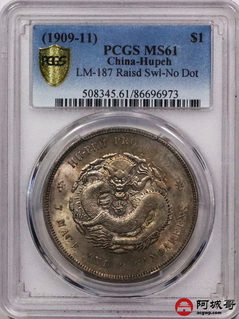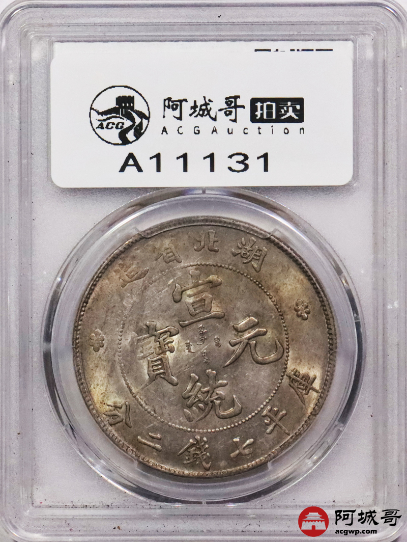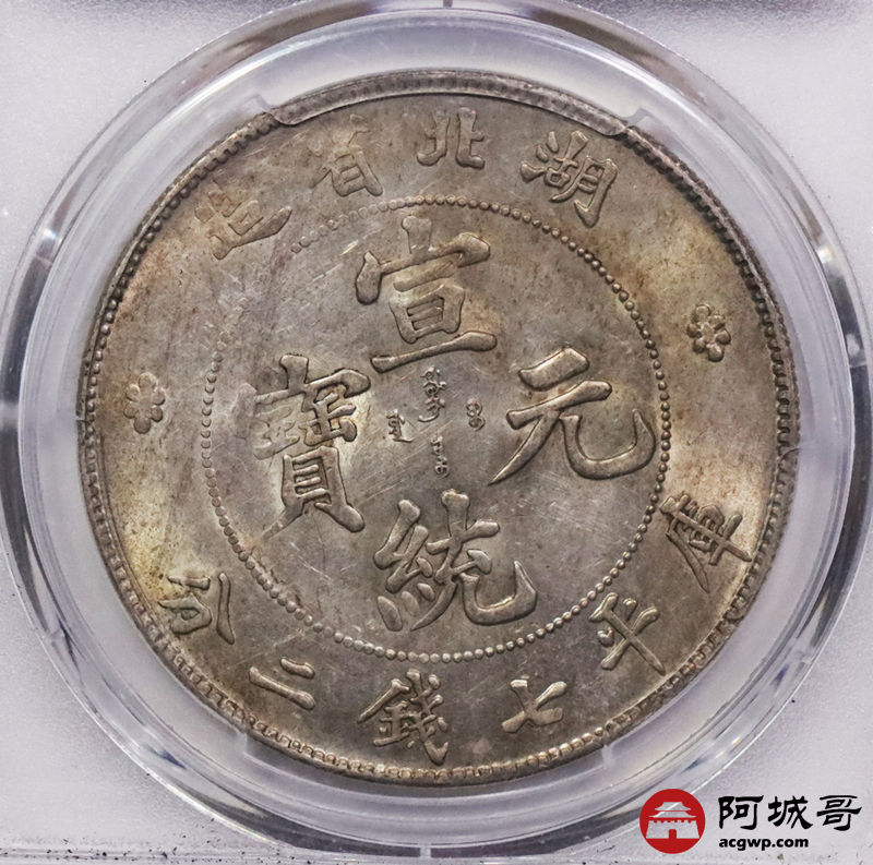 Lot:3077 1909年湖北省造宣统元宝库平七钱二分银币一枚,油彩原光底板 PCGS MS61评级编号:86696973